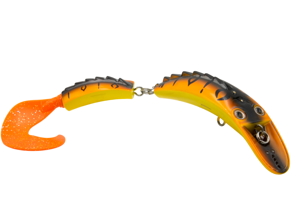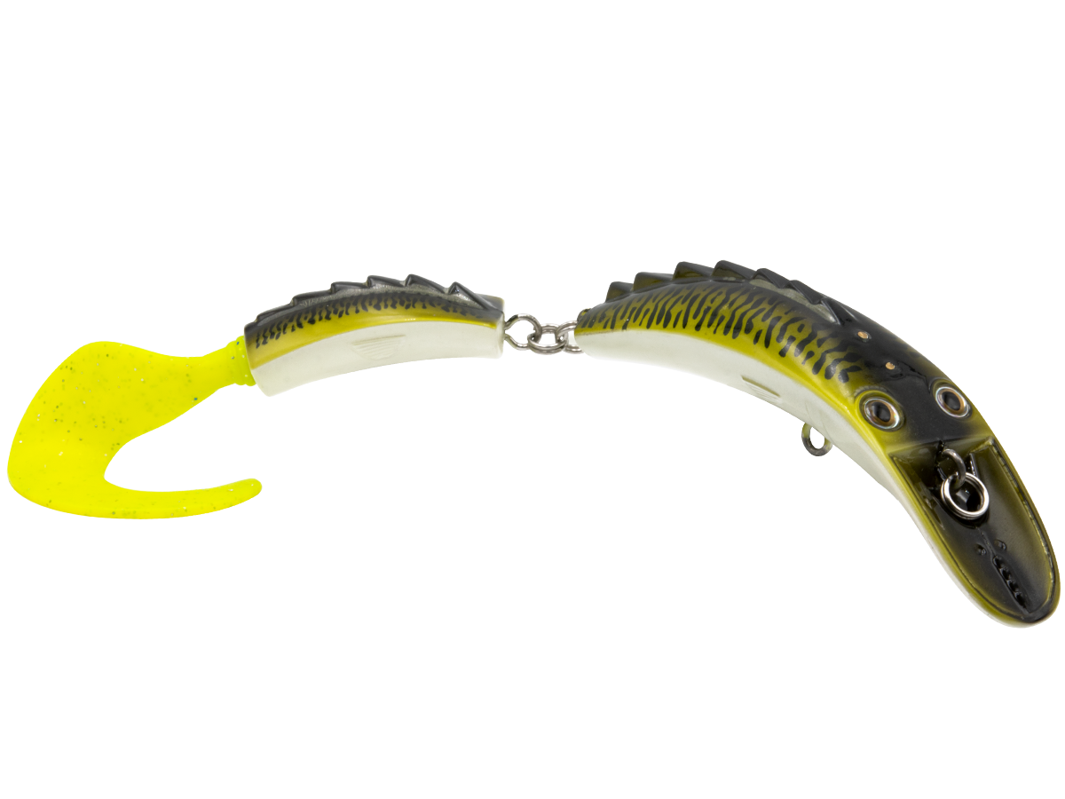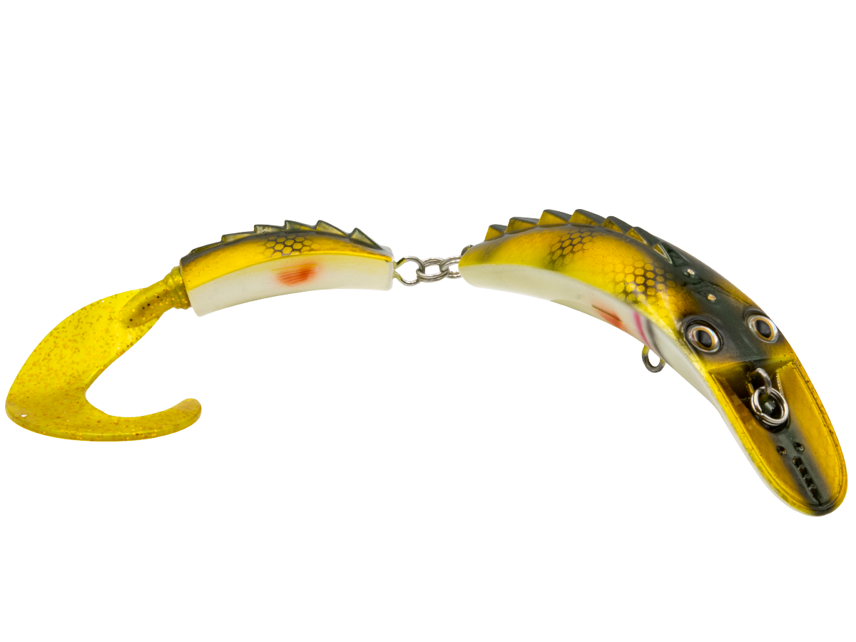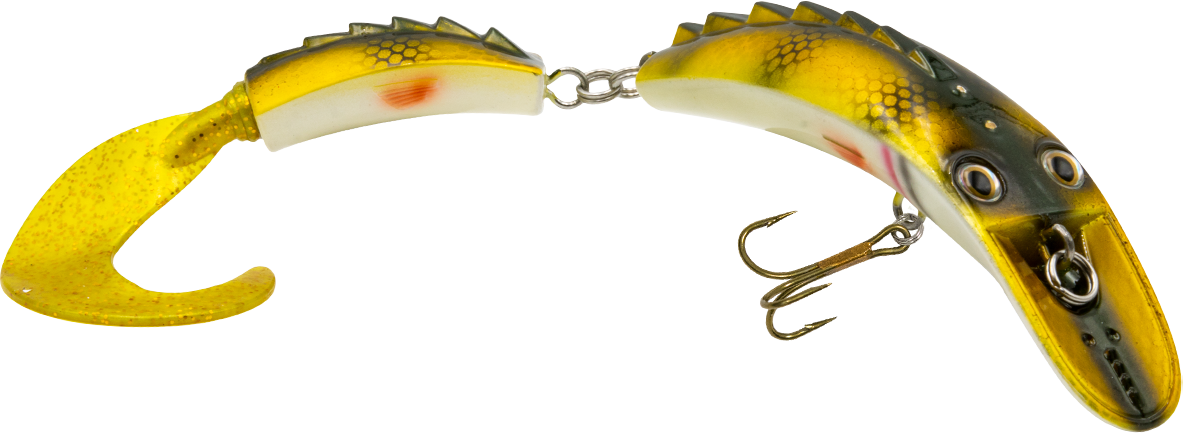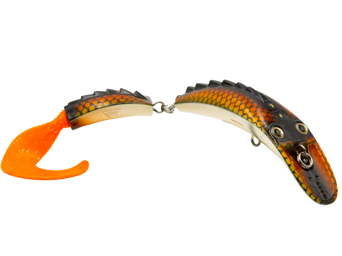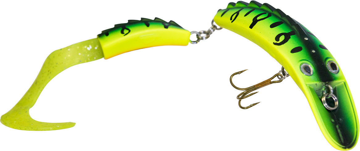 The DIRTY DANCER has the wildest action and vibration a tiger muskie will ever see. The Dirty Dancer's action starts with the dished-out nose and continues through the extended, jointed body, allowing it to vibrate and shimmy aggressively. This creates an erratic enticing action that is tailor made for tiger muskie, pike and true muskie.