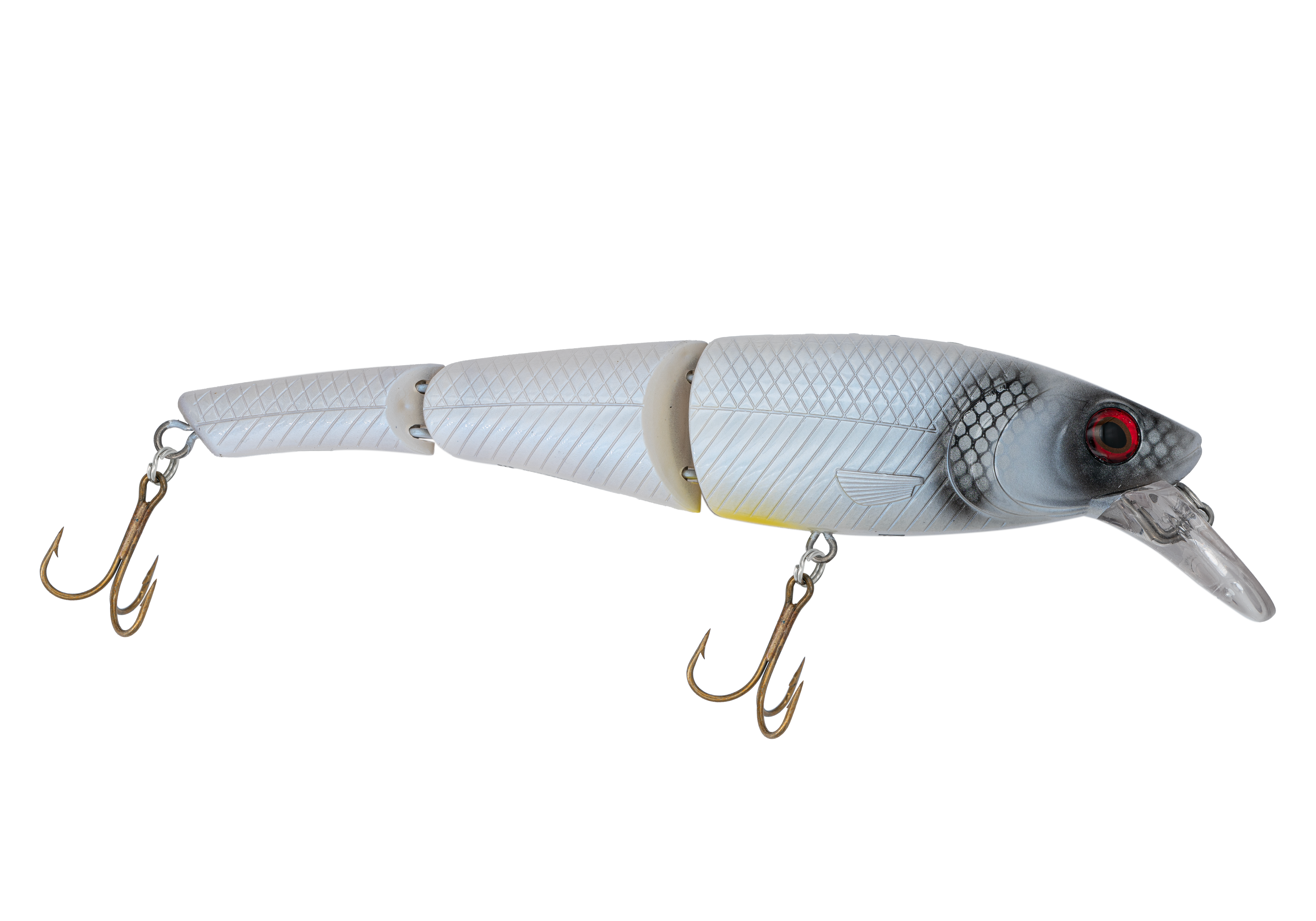 Take one look at the double-jointed body and crankbait-style lip on the HEAD HUNTER MAGNUM and you know immediately that this is a trophy musky/pike/walleye bait, unlike anything you've seen before. The Head Hunter Magnum features the predator-attracting, slow-swimming action of a swimbait; the hard vibrating, hunting action of a shallow crankbait; and an enticing kick-out/darting action on the troll that mimics a baitfish, unlike any other trolling bait. Combine the Headhunter's natural action and slow sink with EBS TechnologyTM (the actual biological sounds of baitfish), and the bait instantly becomes the choice for trophy fish whenever they're related to bigger forage. Built with 2mm wire-through construction.
