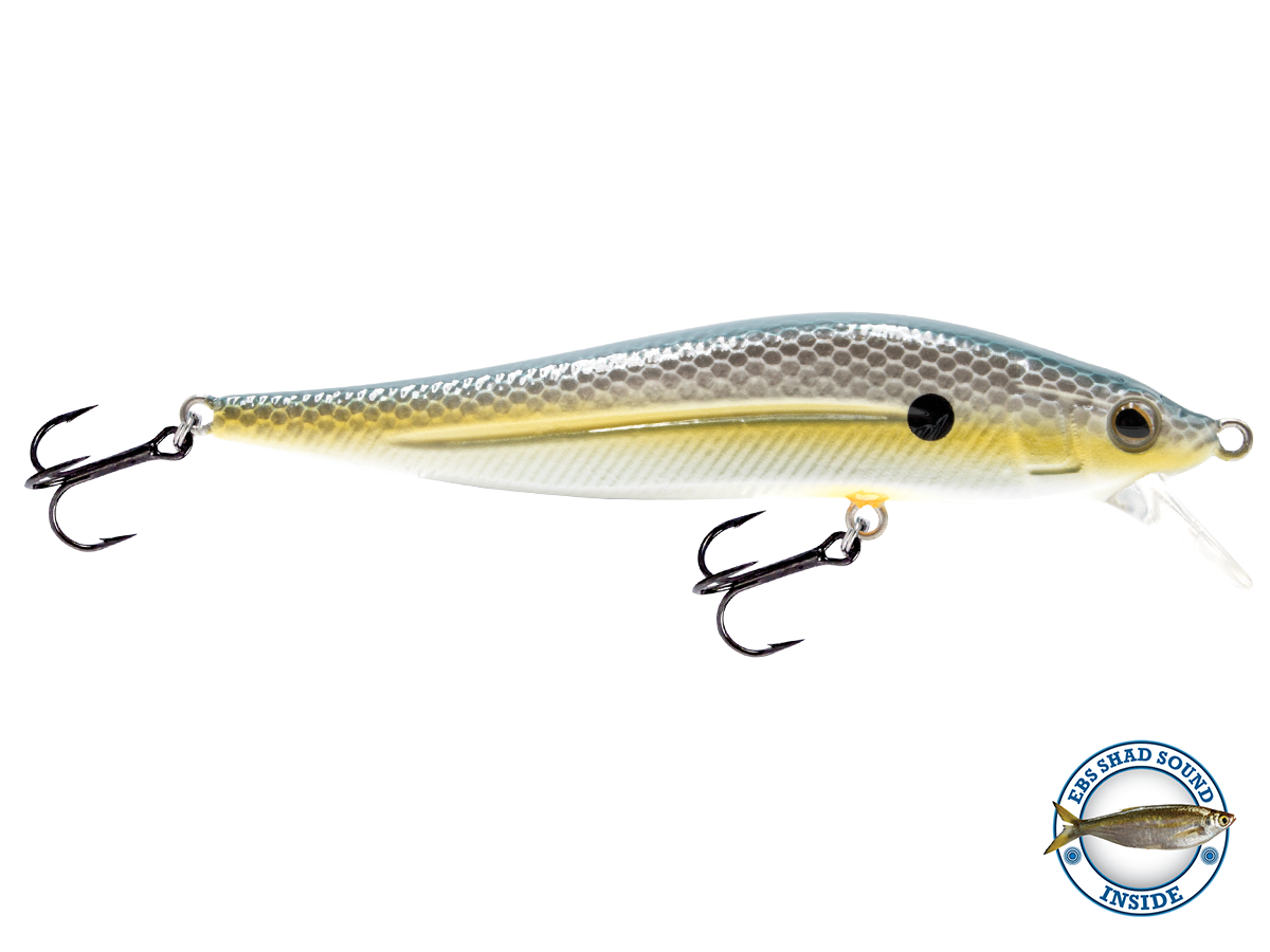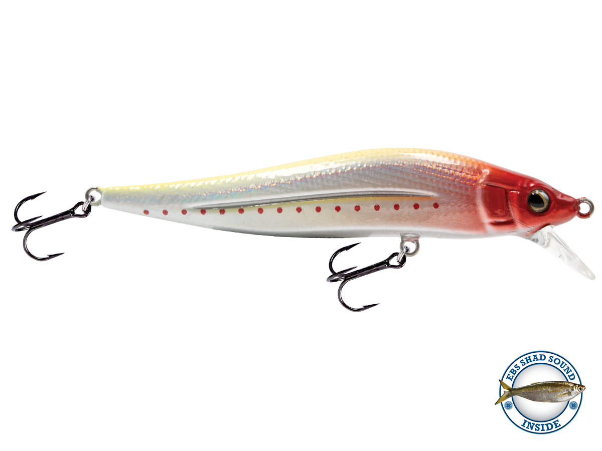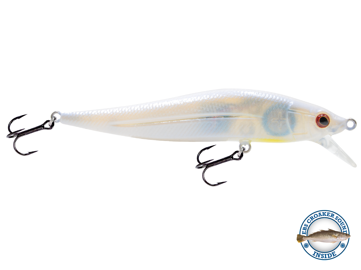 The slow-sinking JERKMASTER JR., just over 3.5" in length, was designed to dart/slash in the 2- to 6-foot range. The JerkMaster Jr's darting action and slow sinking action mimics a dying shad, combined with Livingston's exclusive EBS Technology to give you a mid-depth jerkbait that effectively draws fish from double the distance of a traditional jerkbait.