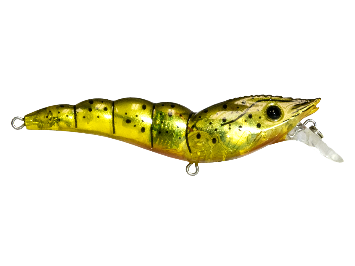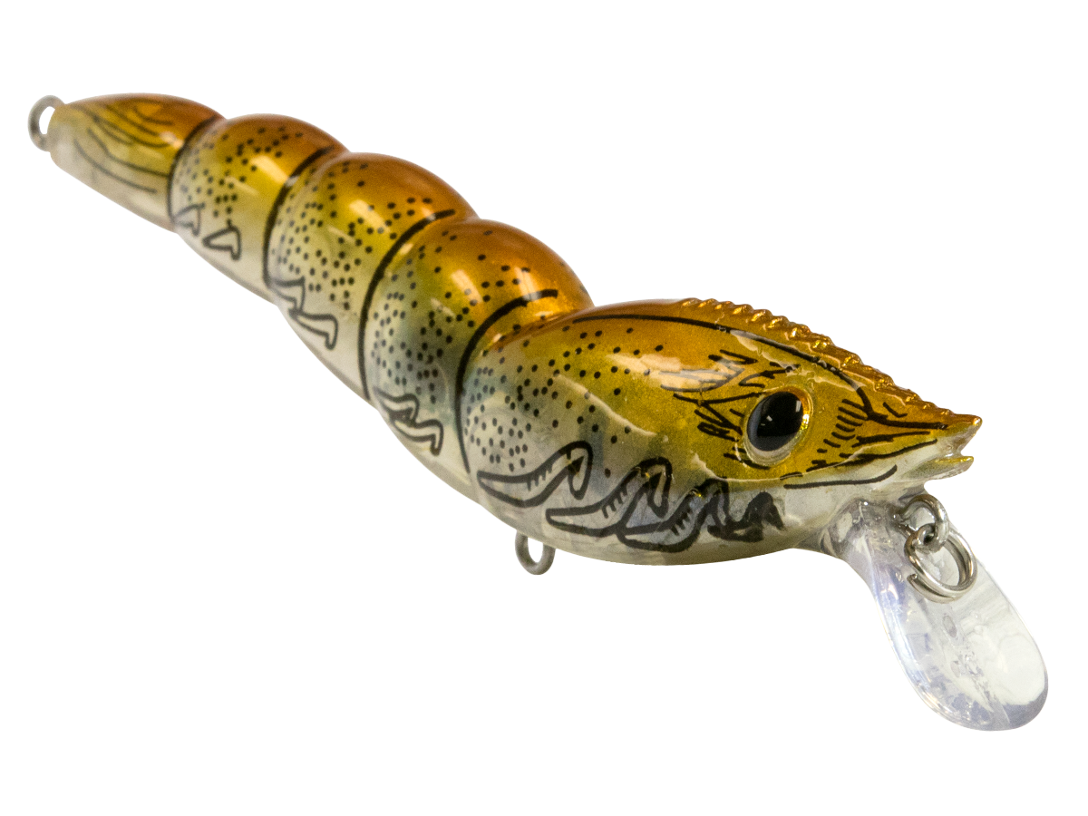 The suspending version of the POBOY 90 produces the same irresistible twitching/darting action as the slow-sinking PoBoy 90, but it allows the power of EBS Shrimp to reach out even farther as it hovers in the water. The result is a shrimp imitation that looks like a shrimp and also produces the actual biological sounds of shrimp that ALL saltwater fish respond to naturally. That's a combination that no redfish, cobia, snook, snapper, striped bass, etc. can resist. Built with 2mm wire-through construction.