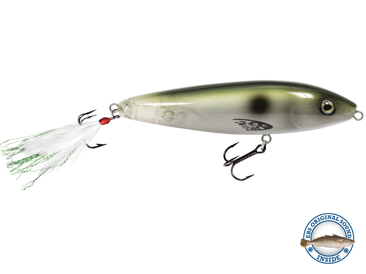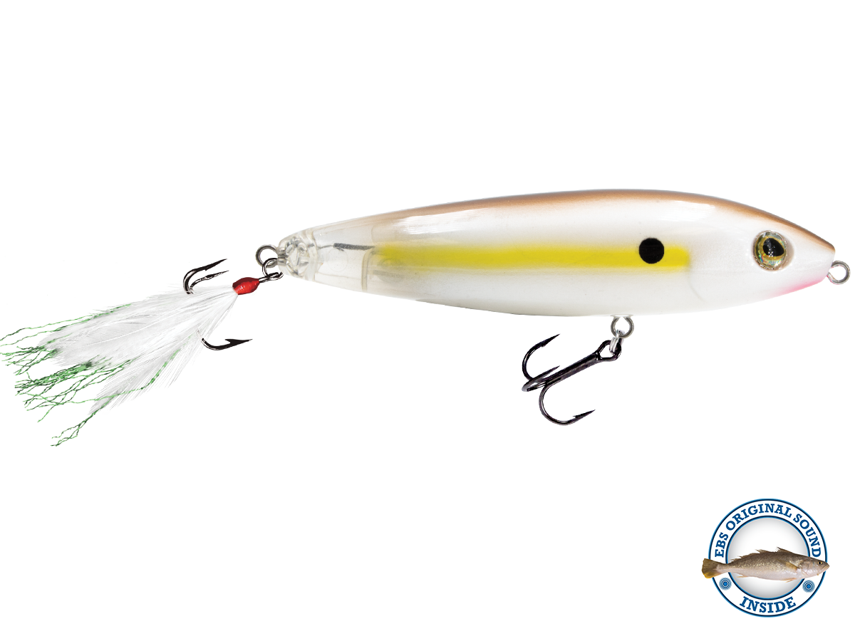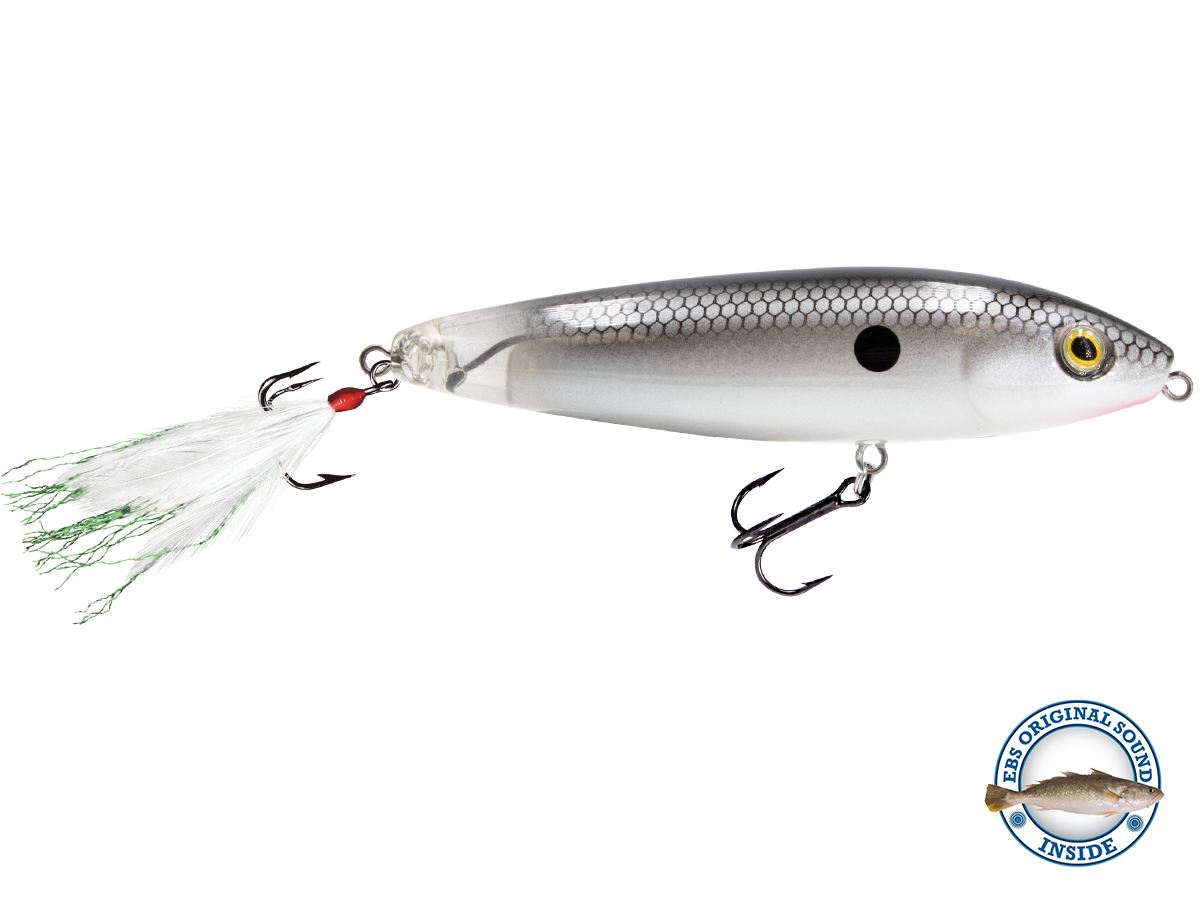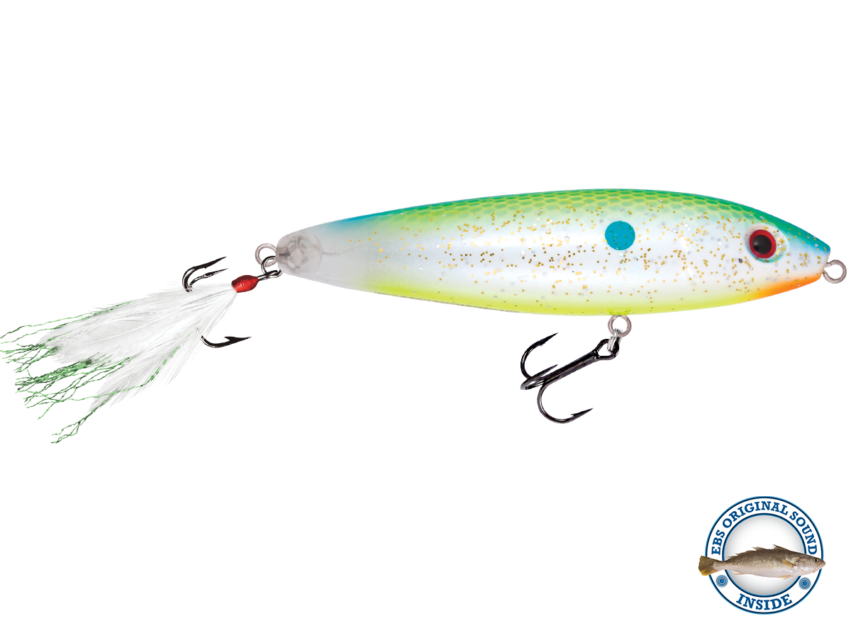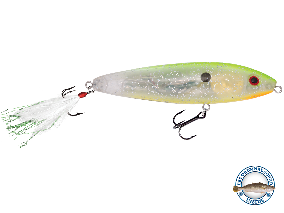 The Pro Sizzle is a walking-style topwater bait that produces explosive surface blow-ups like no other topwater. The Pro Sizzle features EBS TechnologyTMwith illumination in the tail section, a key component to attracting more fish. The illumination fades in and out on the retrieve, and when combined with the power of EBS, makes the Sizzle irresistible to fish foraging on the surface. A twitch of the rod allows any angler to walk the dog like a pro and draw fish from double the distance of traditional lures.