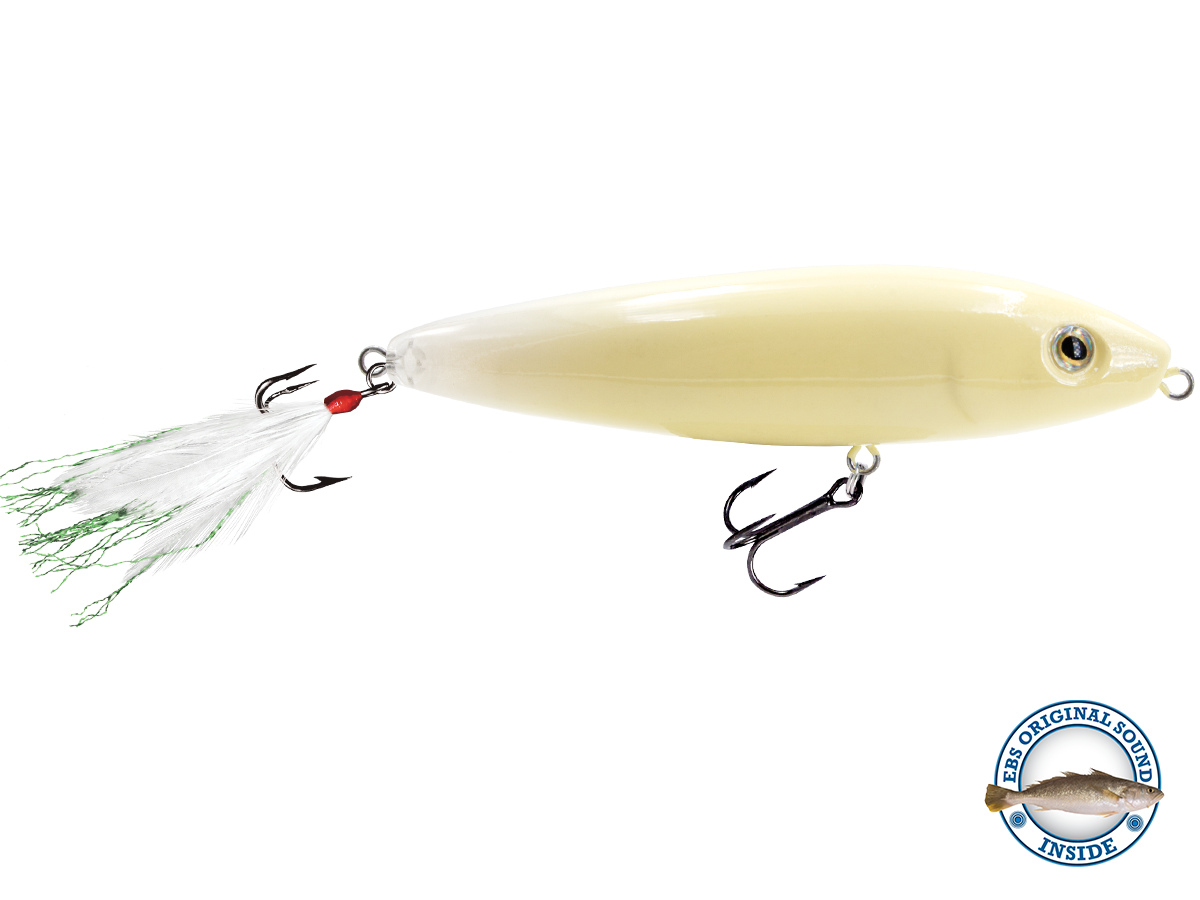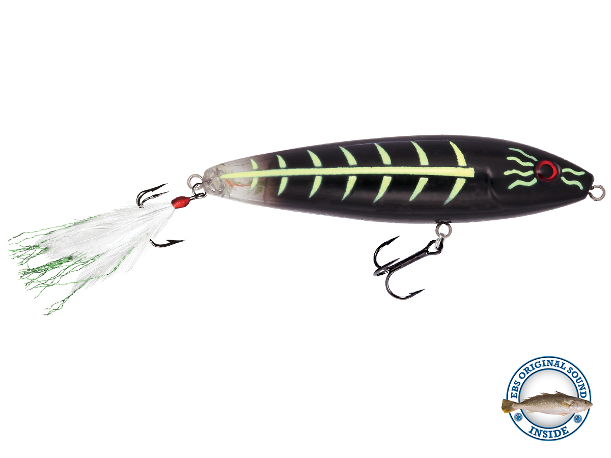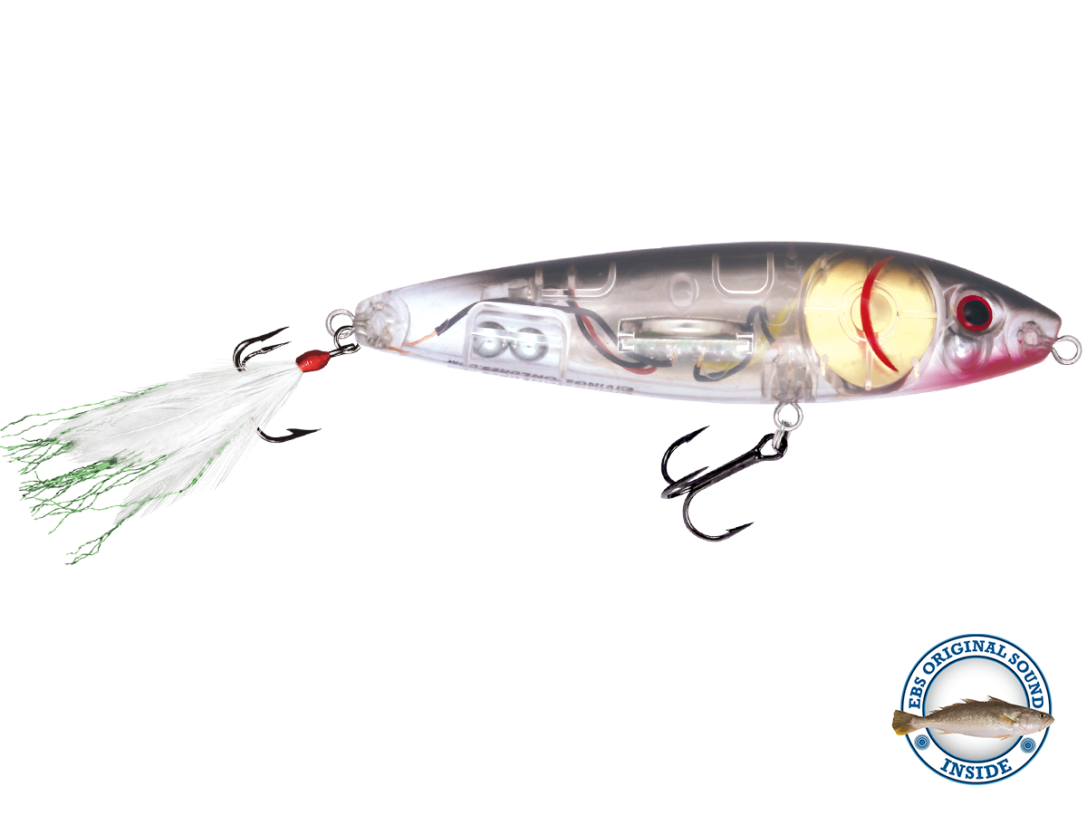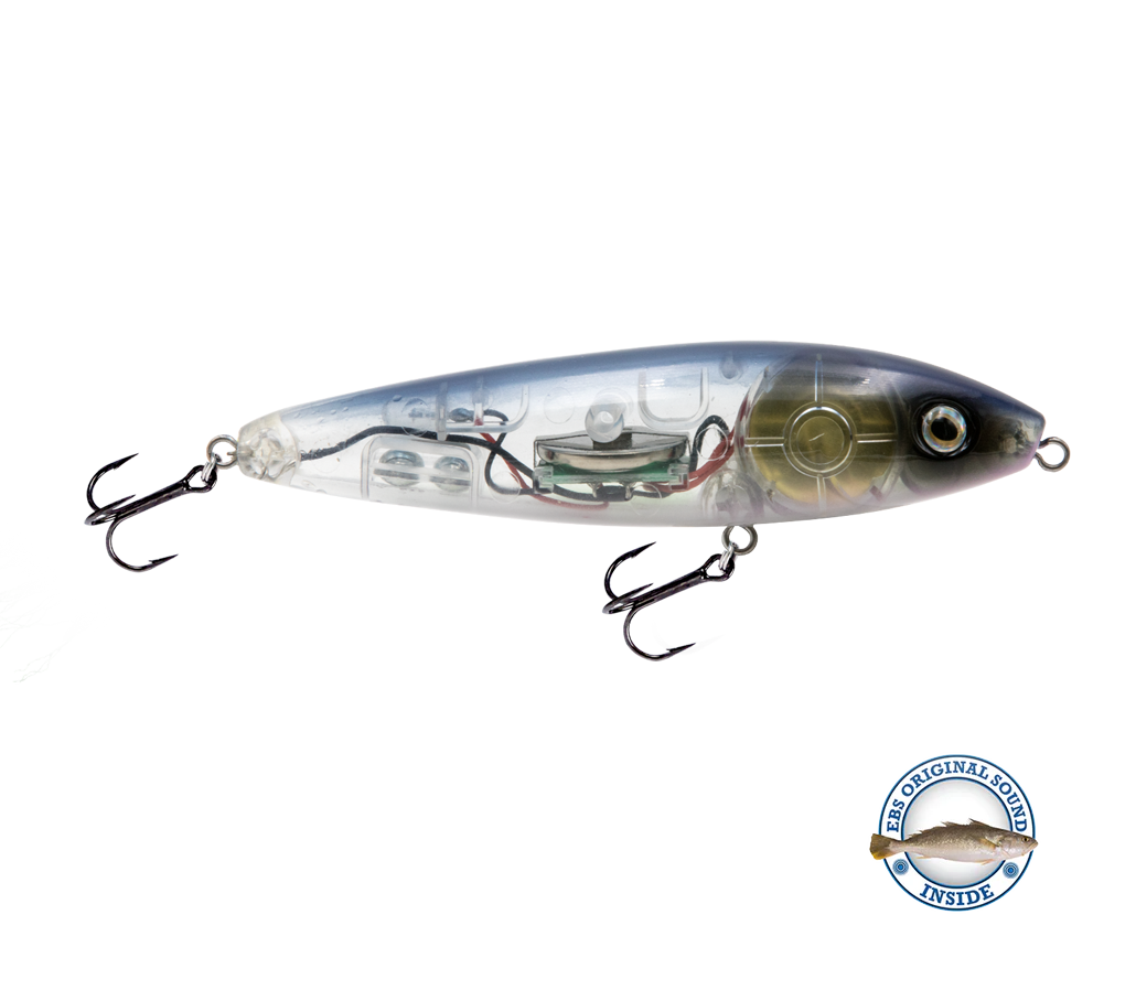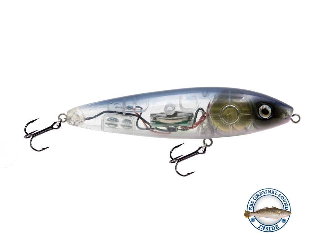 The Pro Sizzle is a walking-style topwater bait that produces explosive surface blow-ups like no other topwater. The Pro Sizzle features EBS TechnologyTMwith illumination in the tail section, a key component to attracting more fish. The illumination fades in and out on the retrieve, and when combined with the power of EBS, makes the Sizzle irresistible to fish foraging on the surface. A twitch of the rod allows any angler to walk the dog like a pro and draw fish from double the distance of traditional lures.