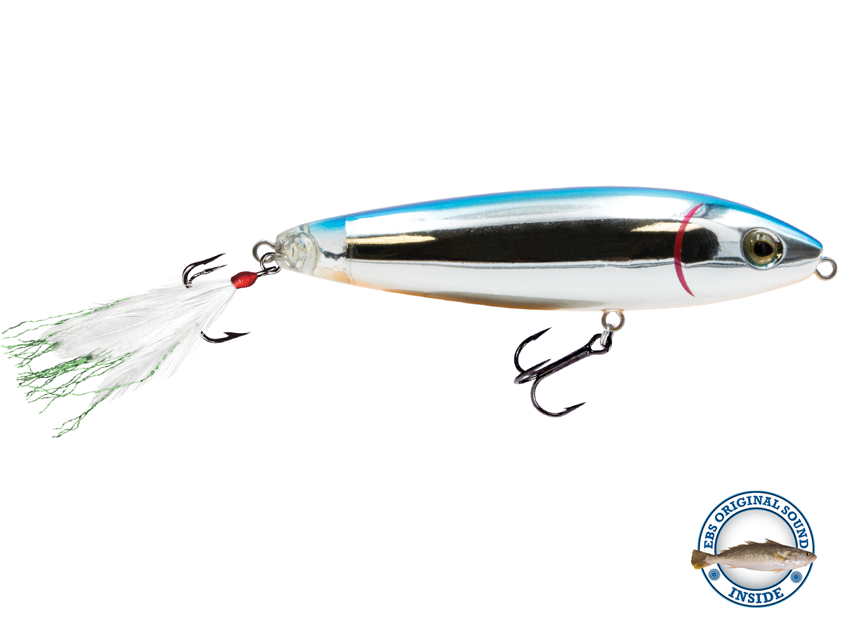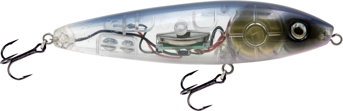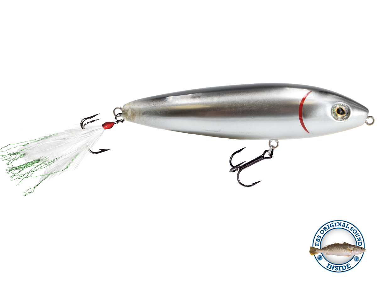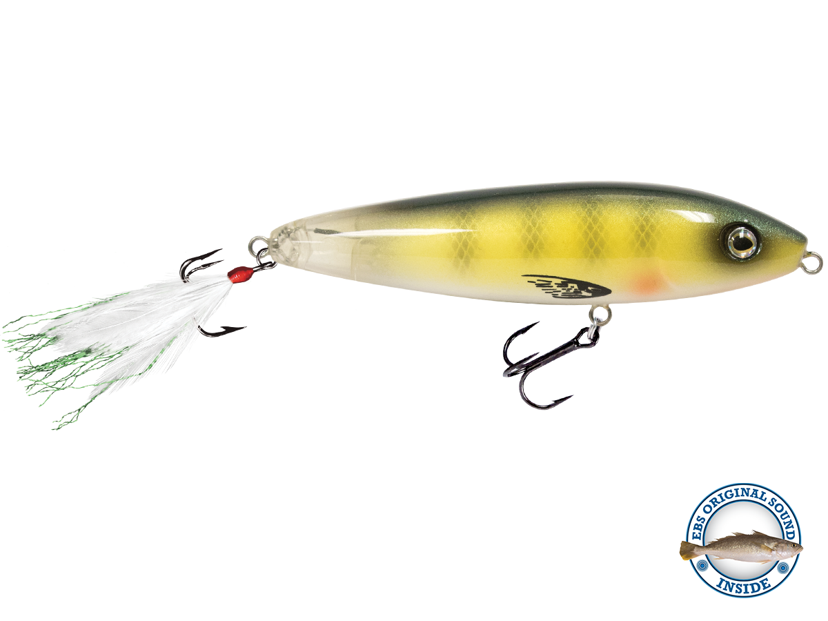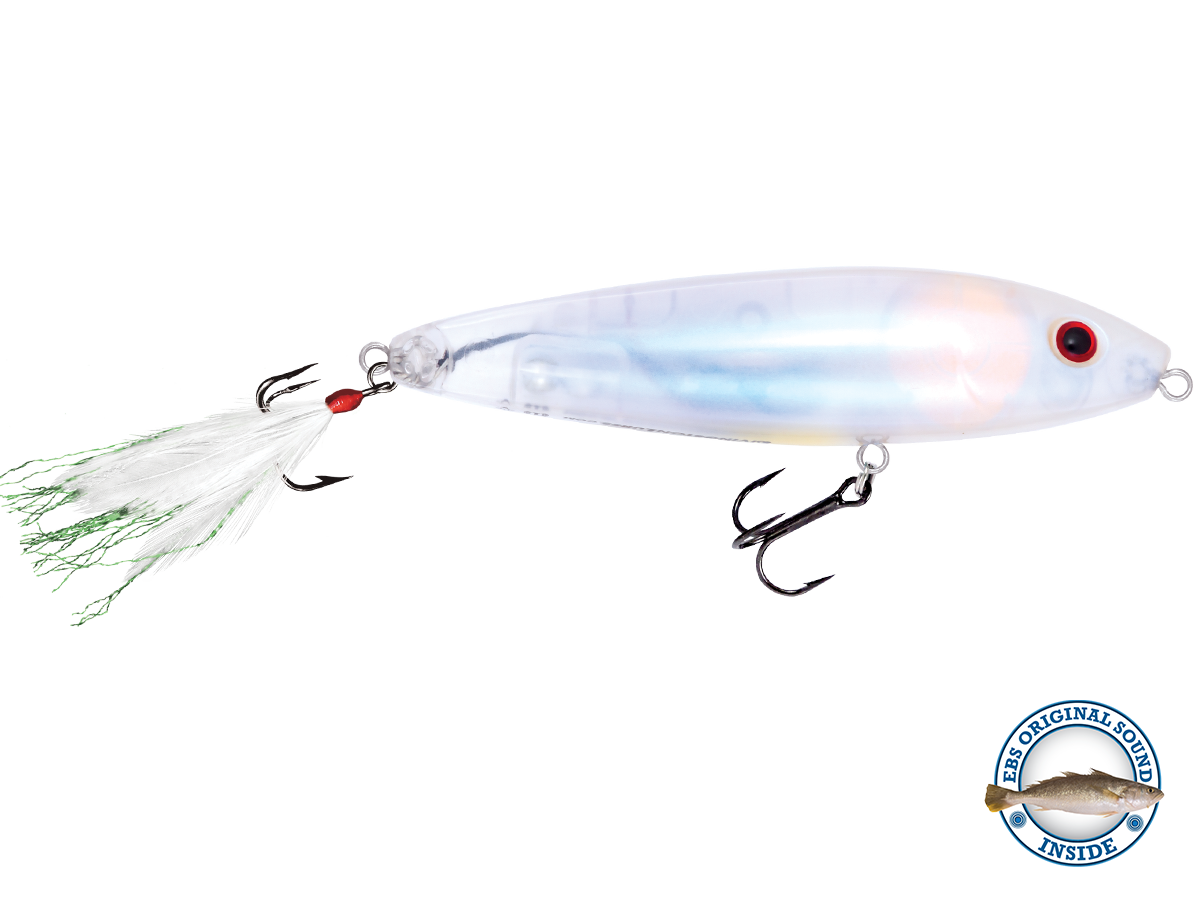 The Pro Sizzle is a walking-style topwater bait that produces explosive surface blow-ups like no other topwater. The Pro Sizzle features EBS TechnologyTMwith illumination in the tail section, a key component to attracting more fish. The illumination fades in and out on the retrieve, and when combined with the power of EBS, makes the Sizzle irresistible to fish foraging on the surface. A twitch of the rod allows any angler to walk the dog like a pro and draw fish from double the distance of traditional lures.