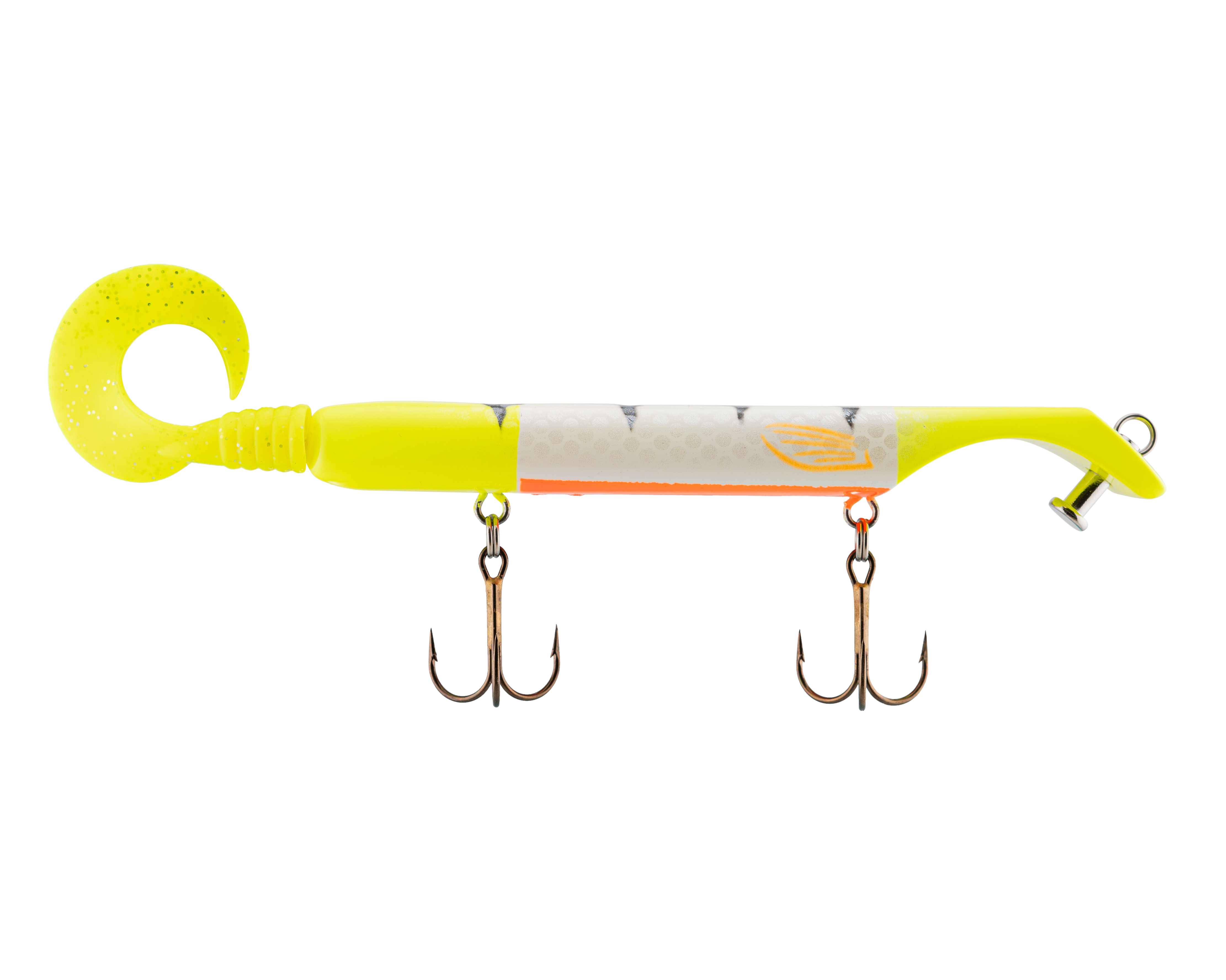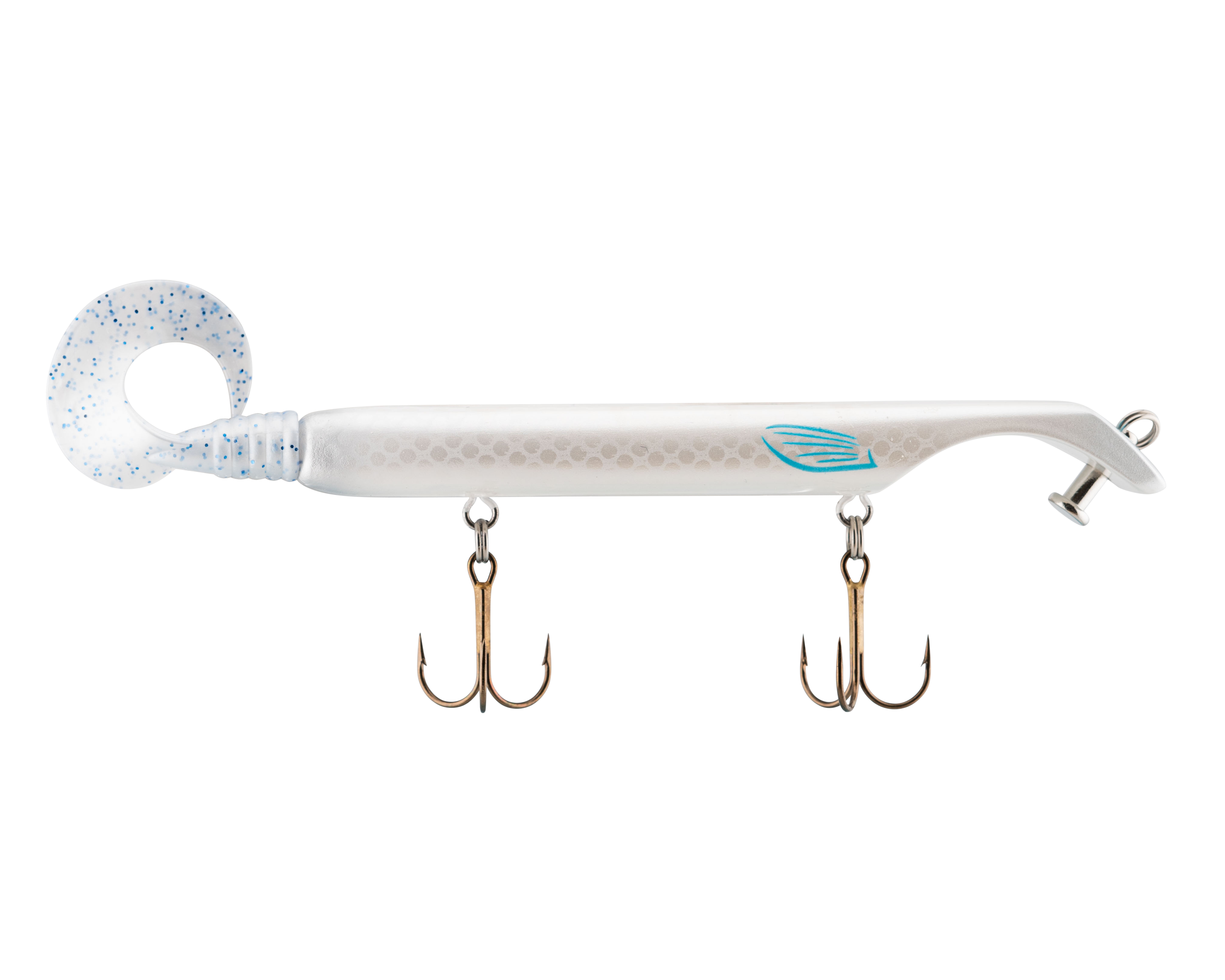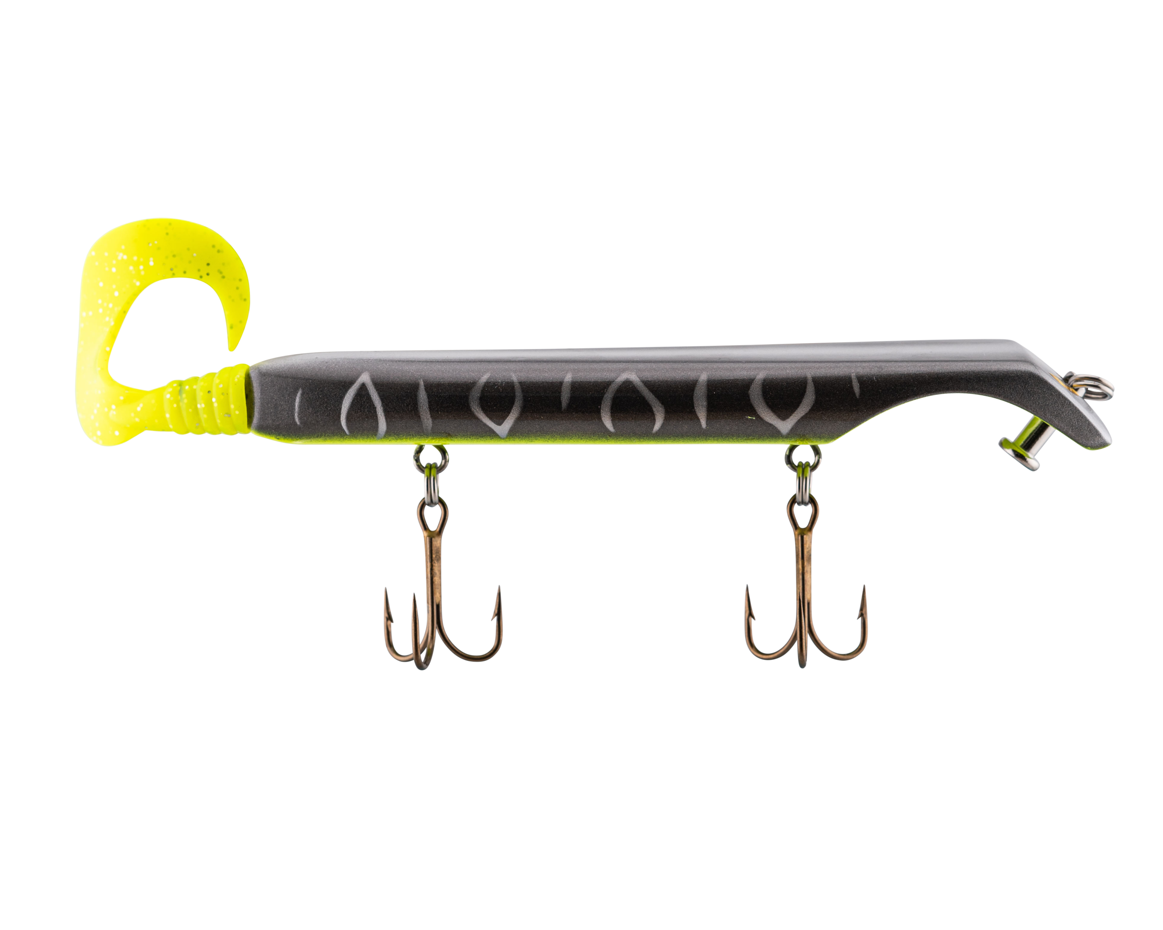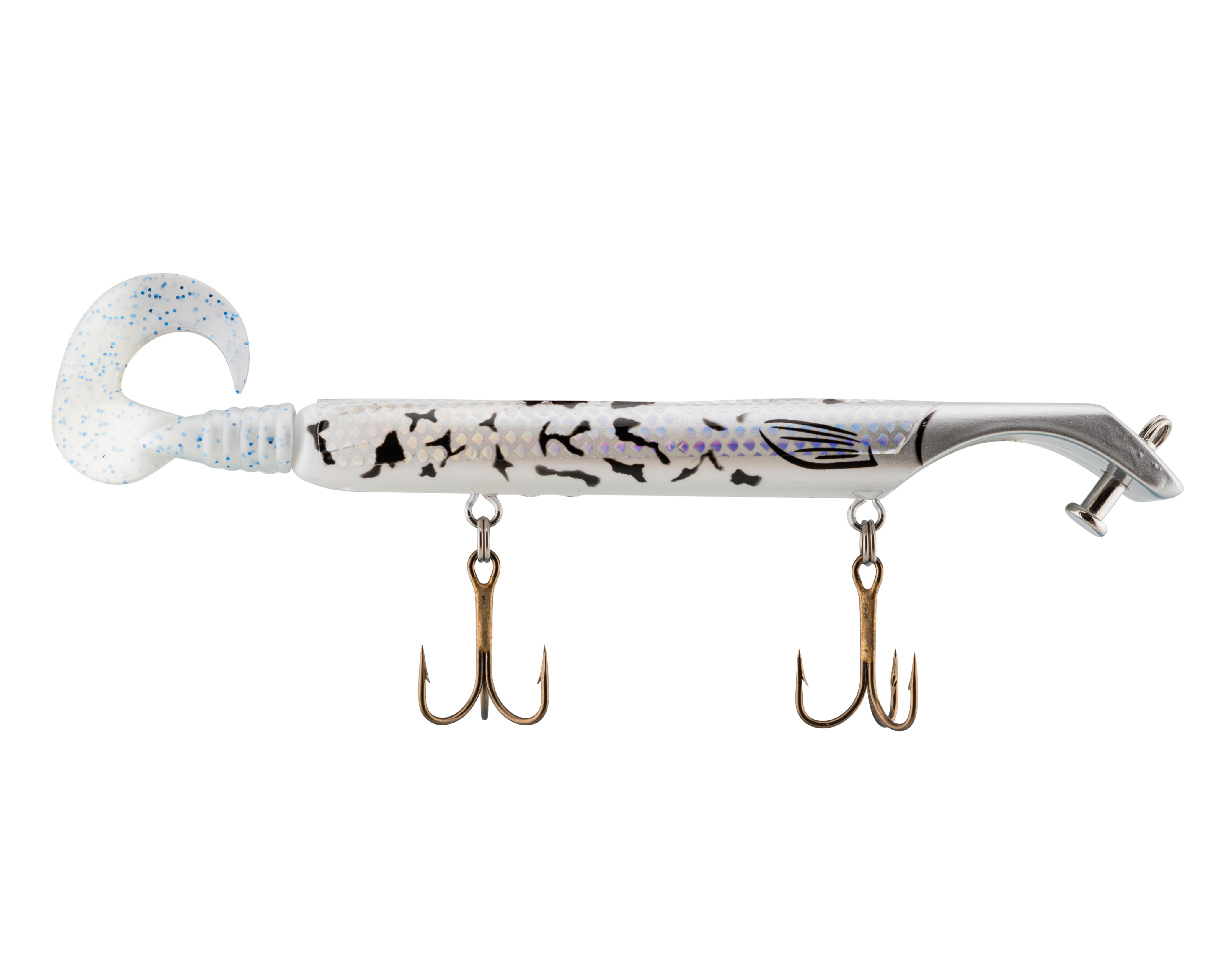 The Livingston Titan Junior provides the same easy, proven musky catching action as its predecessor. Titan Junior is perfect for cast-back, cold-front, shad-based, and early-season applications. This internally weighted model is intended for shallow presentations near shoreline weeds and structure. Apex predators can't resist the dive and rise action coupled with its wobble on the pause. The Titan Junior is the perfect presentation for Musky, Pike and other predatory game fish. The Titan's revolutionary design is the brainchild of acclaimed Musky Fishing guide Steven Paul and the Livingston Lures team. Their goal was to design a lure that works without so much WORK, allowing anglers to focus on what's important: putting fish in the net. The Titan Junior can be controlled in a simple reel-pause-stop fashion to achieve the classic jerk bait presentation or operated with rod taps and pulls to make the lure dive and rise in new and exciting ways. The Titan Junior comes with an easily replaceable corkscrew-mounted soft tail.