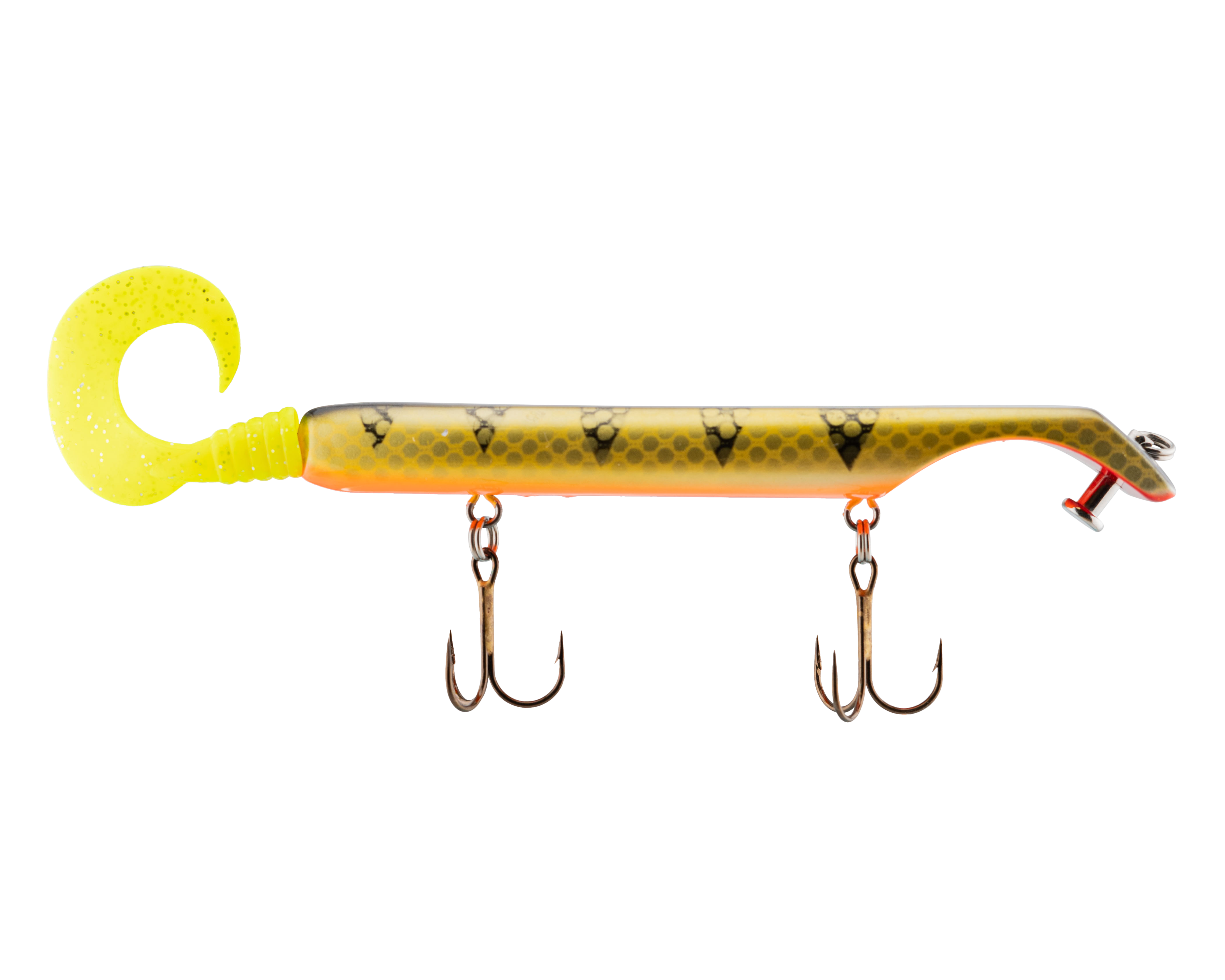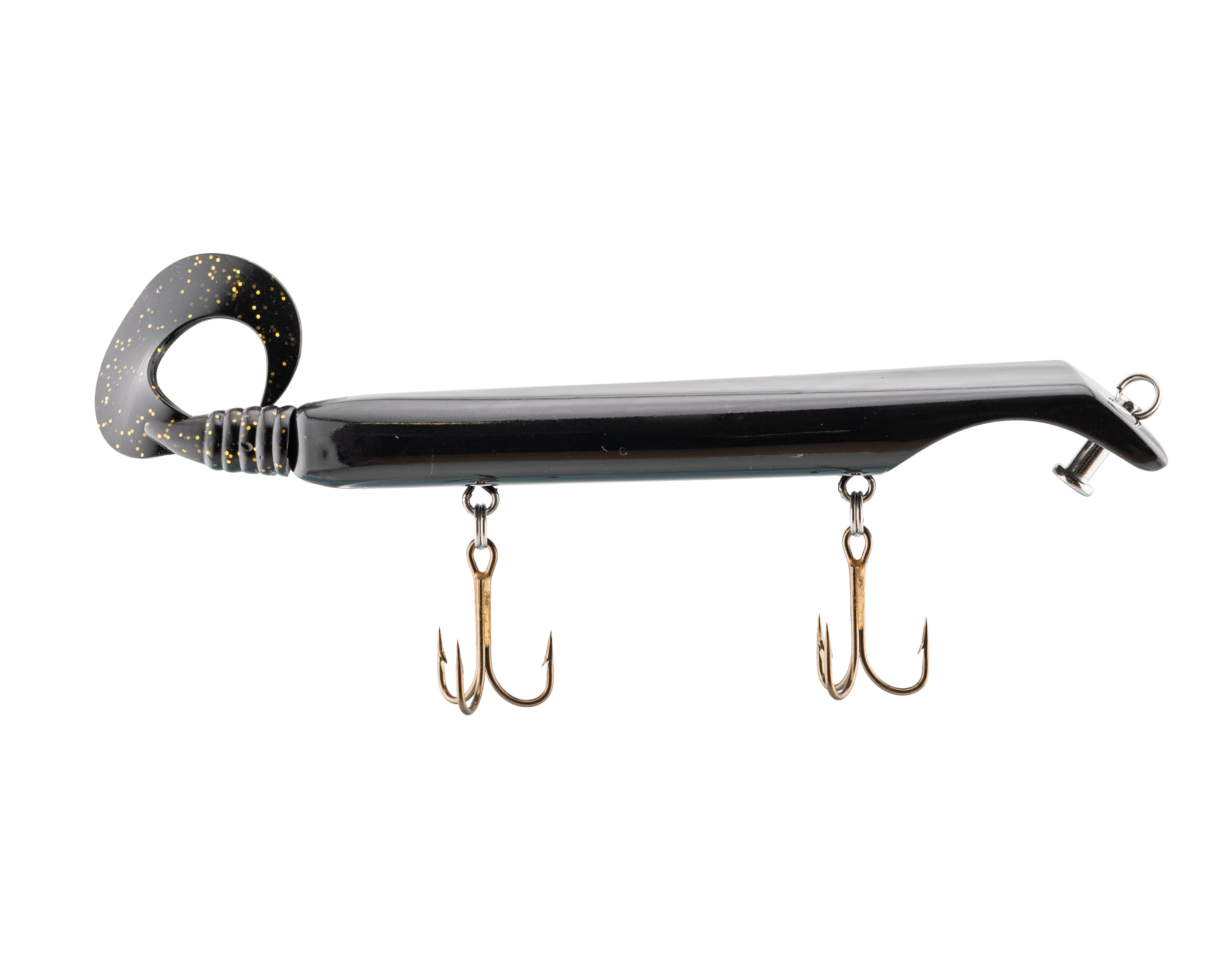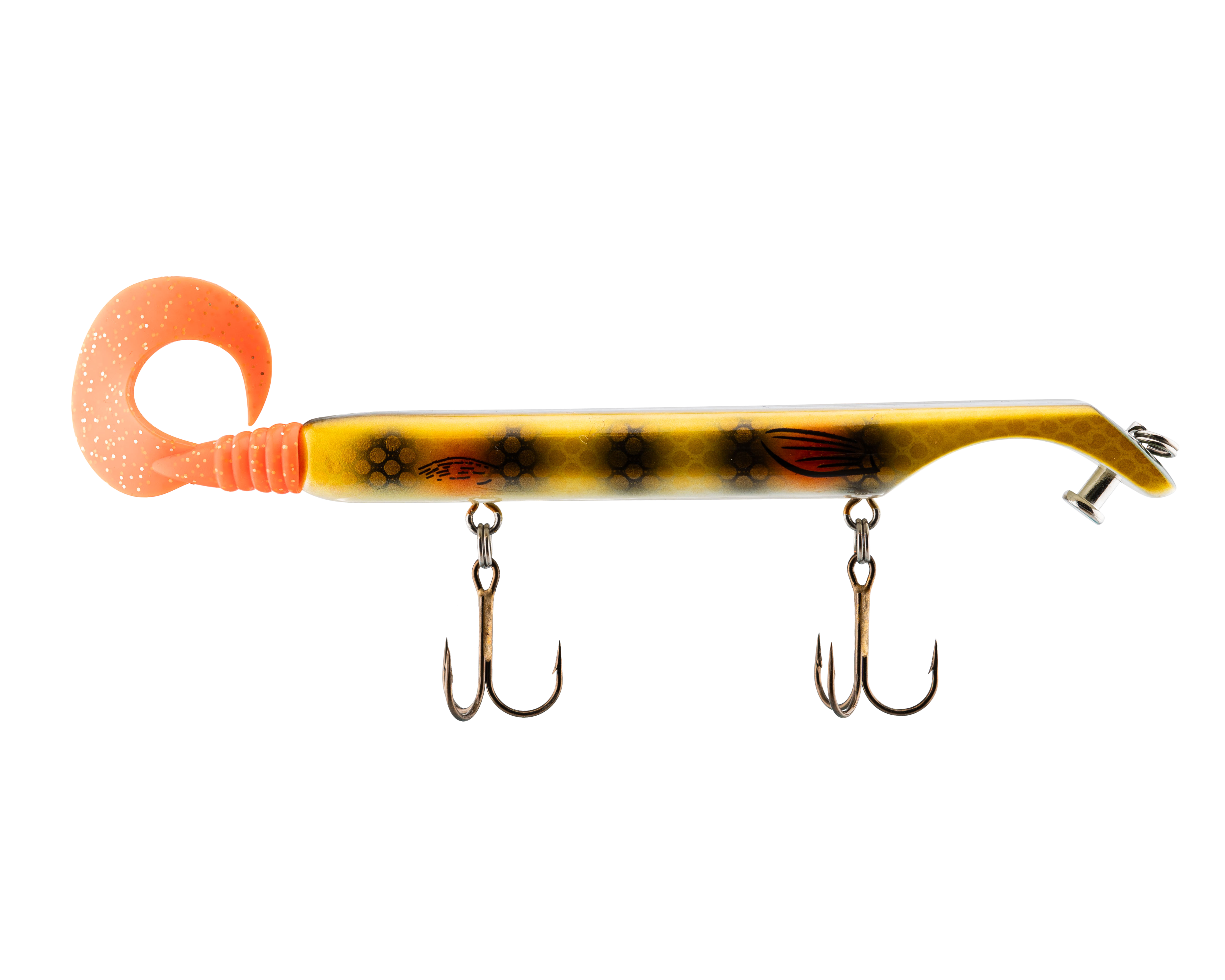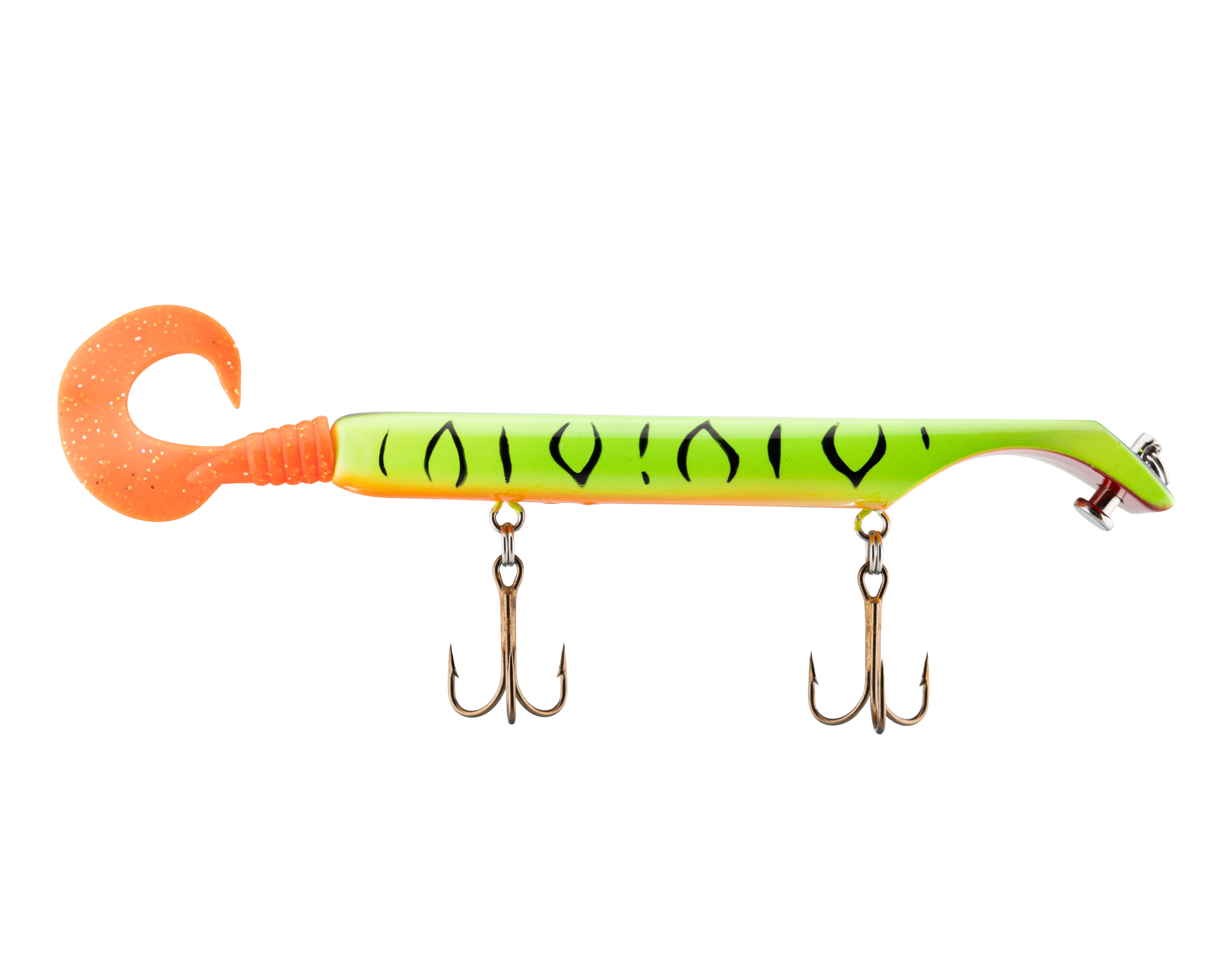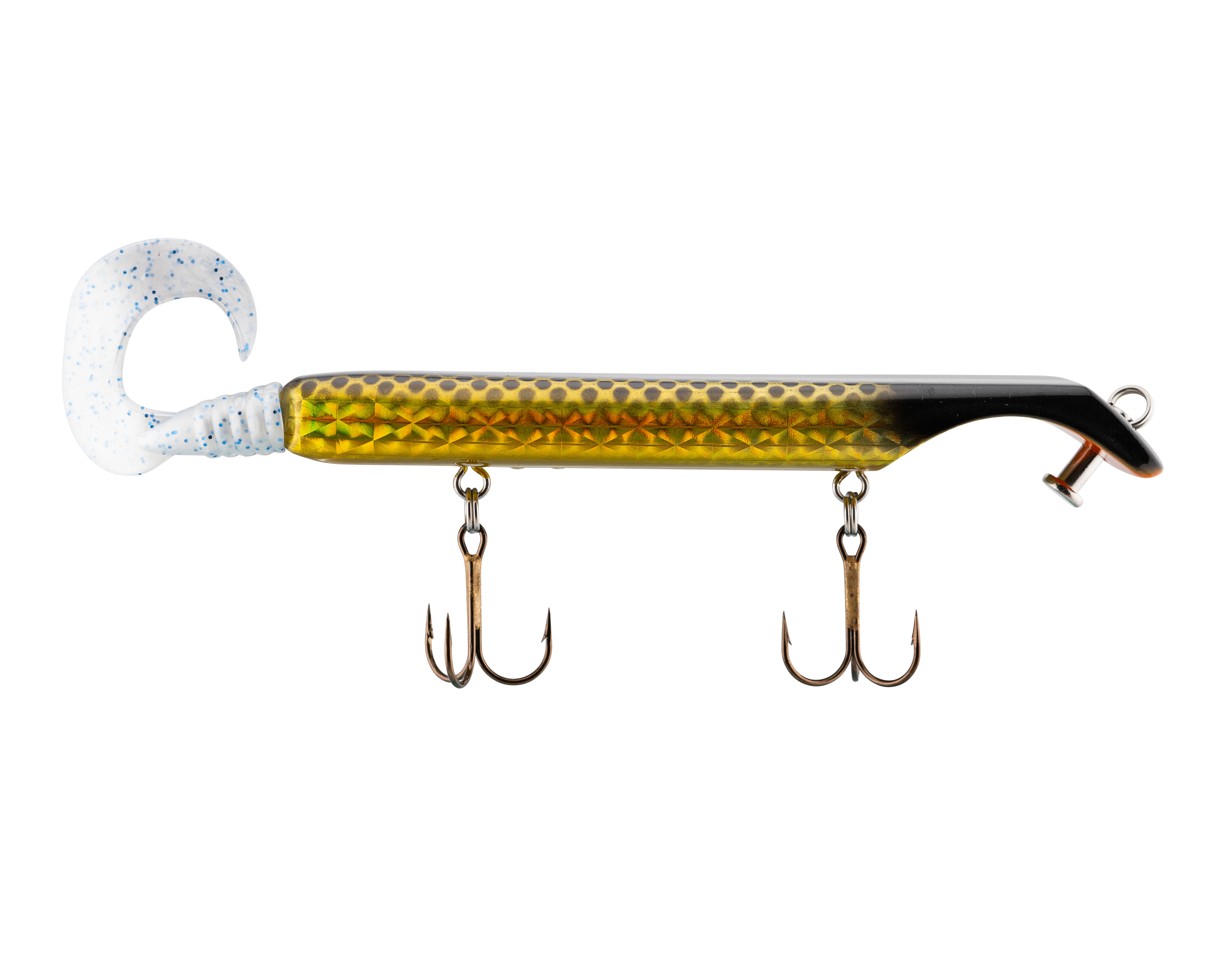 The Livingston Titan Junior provides the same easy, proven musky catching action as its predecessor. Titan Junior is perfect for cast-back, cold-front, shad-based, and early-season applications. This internally weighted model is intended for shallow presentations near shoreline weeds and structure. Apex predators can't resist the dive and rise action coupled with its wobble on the pause. The Titan Junior is the perfect presentation for Musky, Pike and other predatory game fish. The Titan's revolutionary design is the brainchild of acclaimed Musky Fishing guide Steven Paul and the Livingston Lures team. Their goal was to design a lure that works without so much WORK, allowing anglers to focus on what's important: putting fish in the net. The Titan Junior can be controlled in a simple reel-pause-stop fashion to achieve the classic jerk bait presentation or operated with rod taps and pulls to make the lure dive and rise in new and exciting ways. The Titan Junior comes with an easily replaceable corkscrew-mounted soft tail.