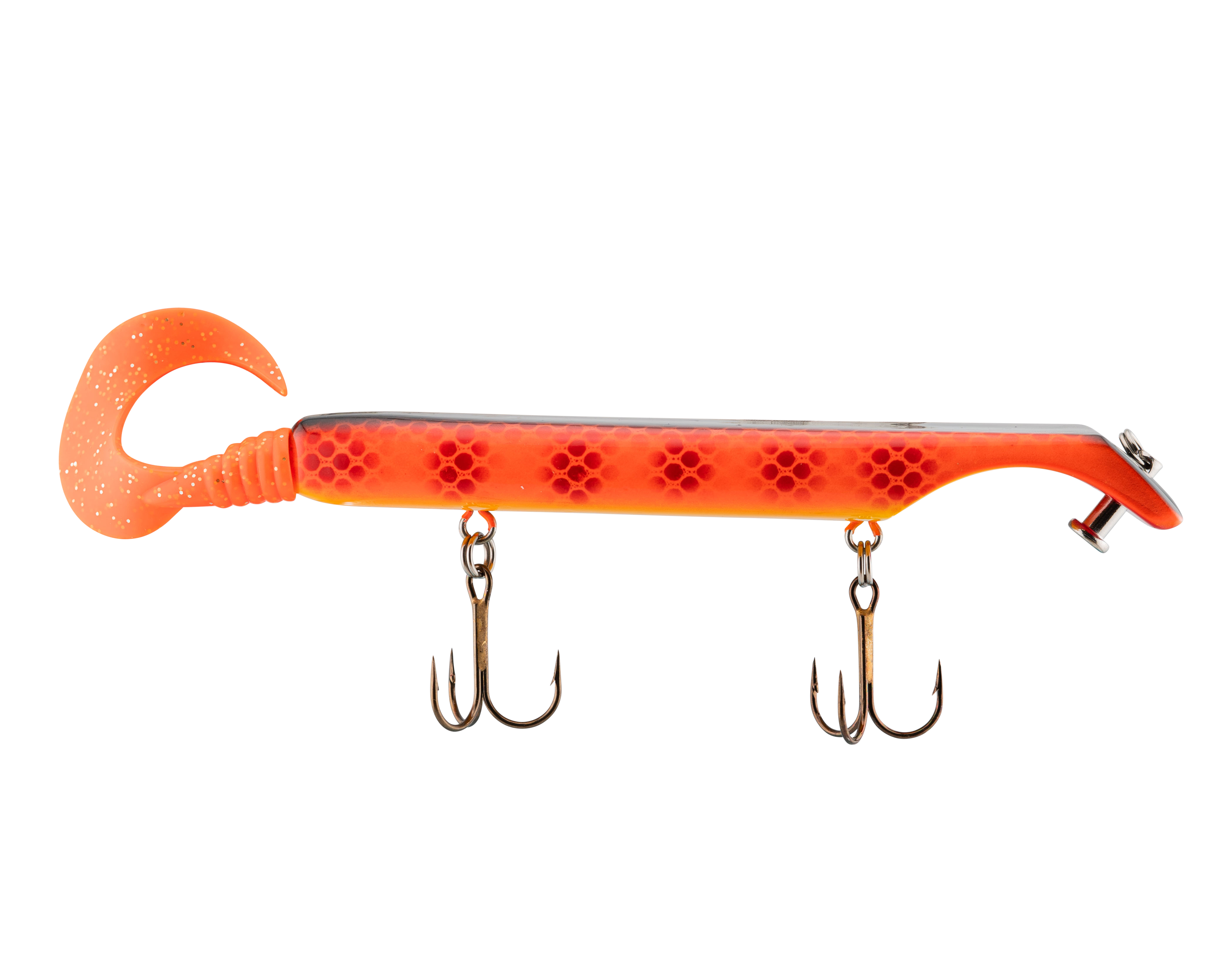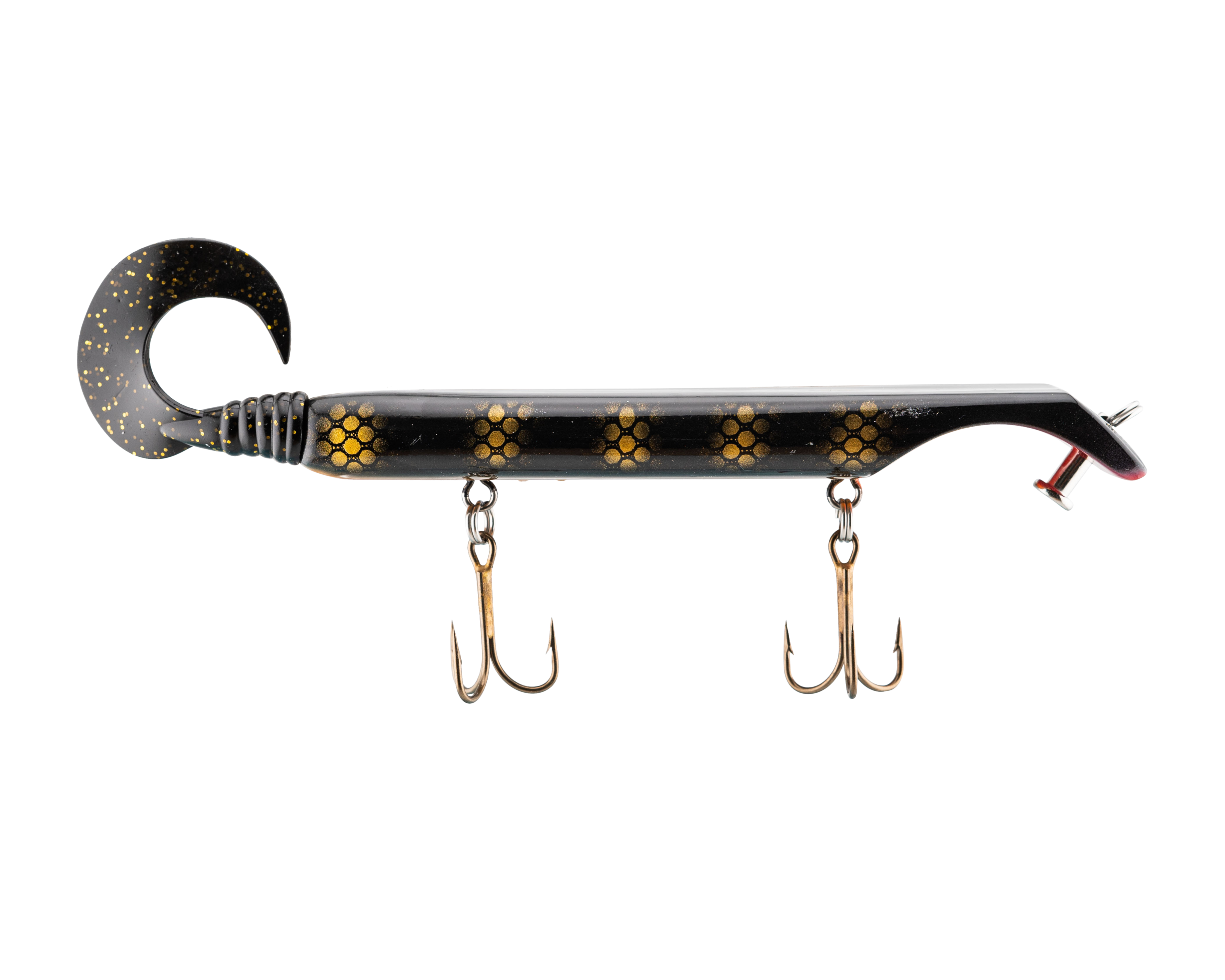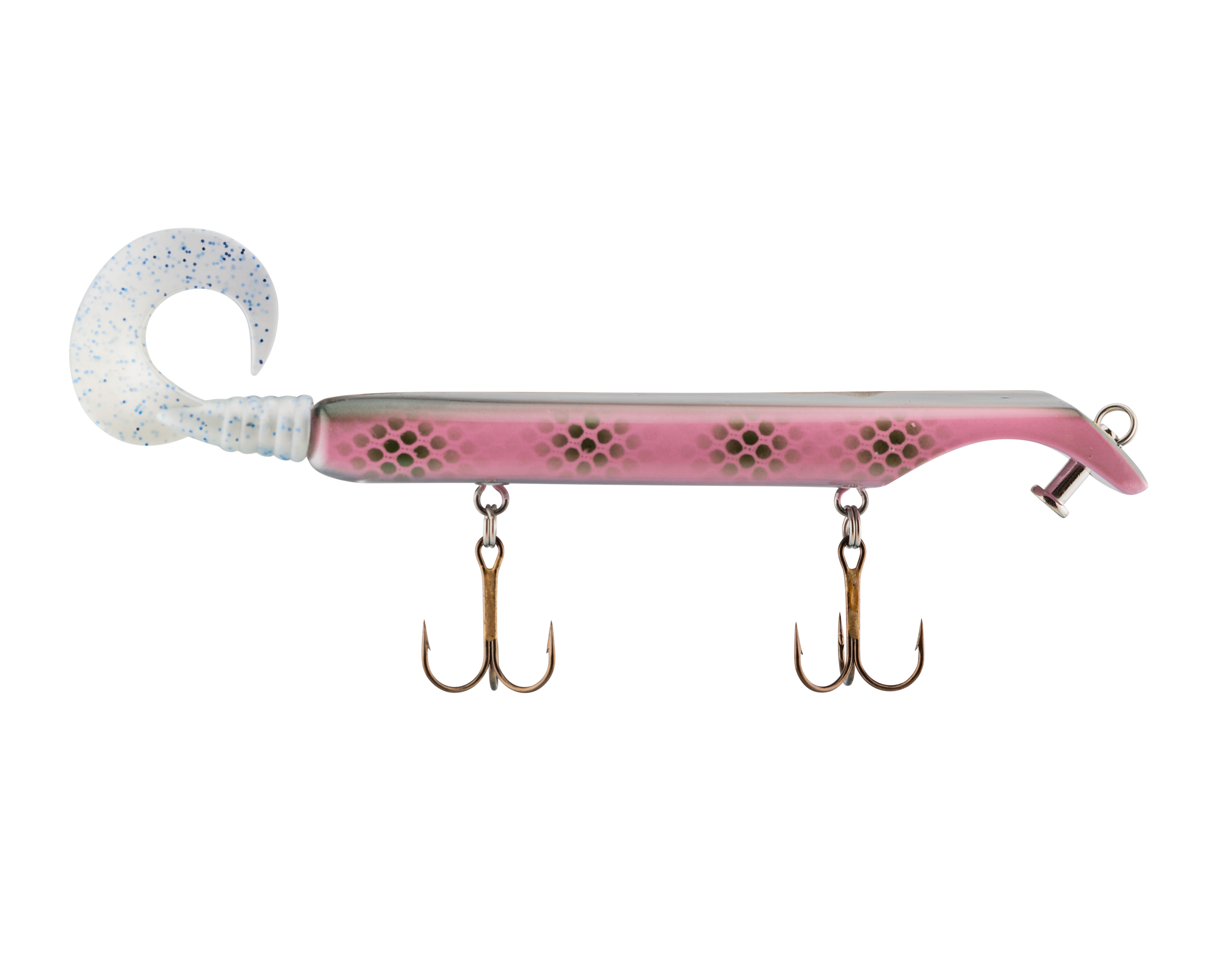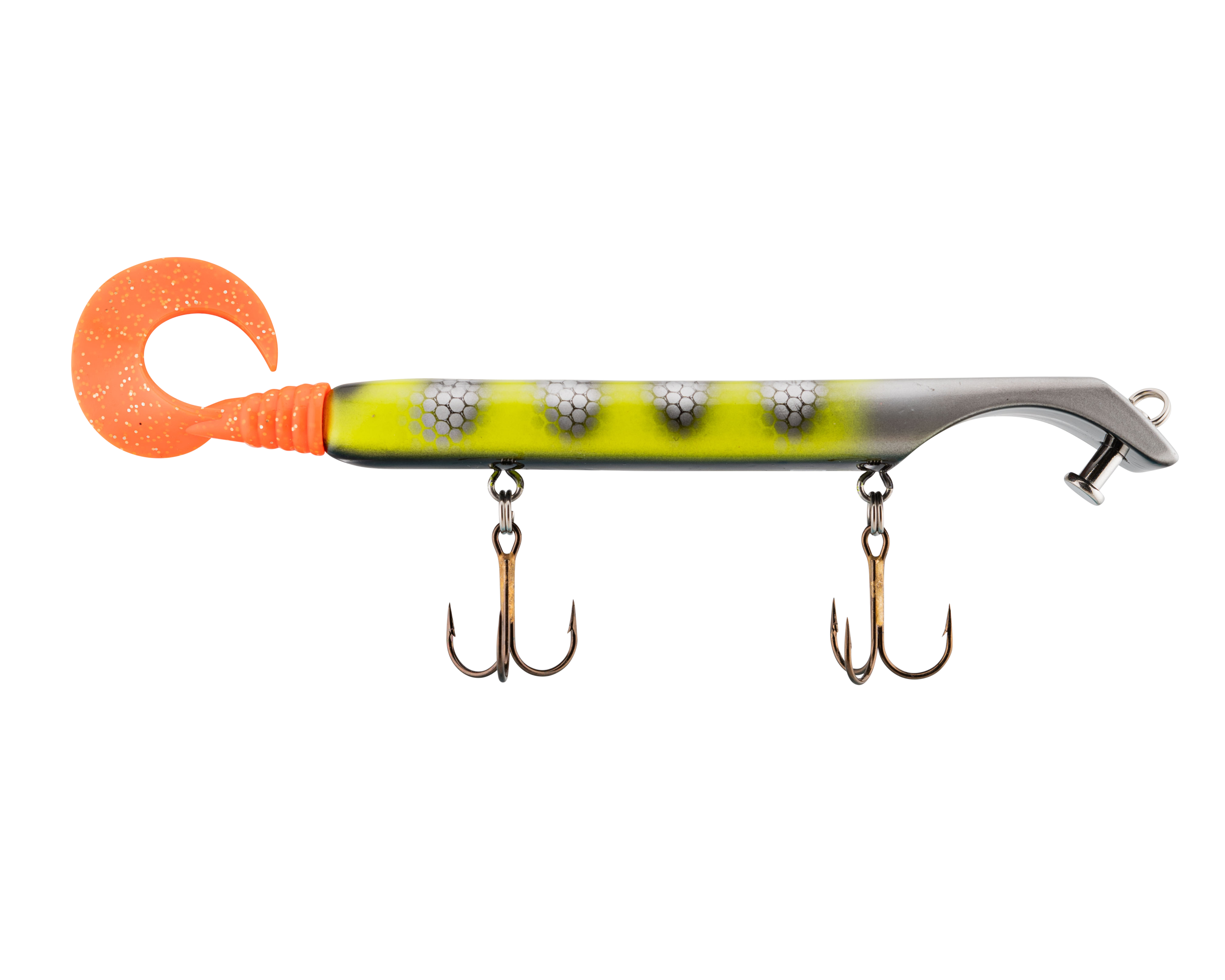 The Livingston Titan Junior provides the same easy, proven musky catching action as its predecessor. Titan Junior is perfect for cast-back, cold-front, shad-based, and early-season applications. This internally weighted model is intended for shallow presentations near shoreline weeds and structure. Apex predators can't resist the dive and rise action coupled with its wobble on the pause. The Titan Junior is the perfect presentation for Musky, Pike and other predatory game fish. The Titan's revolutionary design is the brainchild of acclaimed Musky Fishing guide Steven Paul and the Livingston Lures team. Their goal was to design a lure that works without so much WORK, allowing anglers to focus on what's important: putting fish in the net. The Titan Junior can be controlled in a simple reel-pause-stop fashion to achieve the classic jerk bait presentation or operated with rod taps and pulls to make the lure dive and rise in new and exciting ways. The Titan Junior comes with an easily replaceable corkscrew-mounted soft tail.