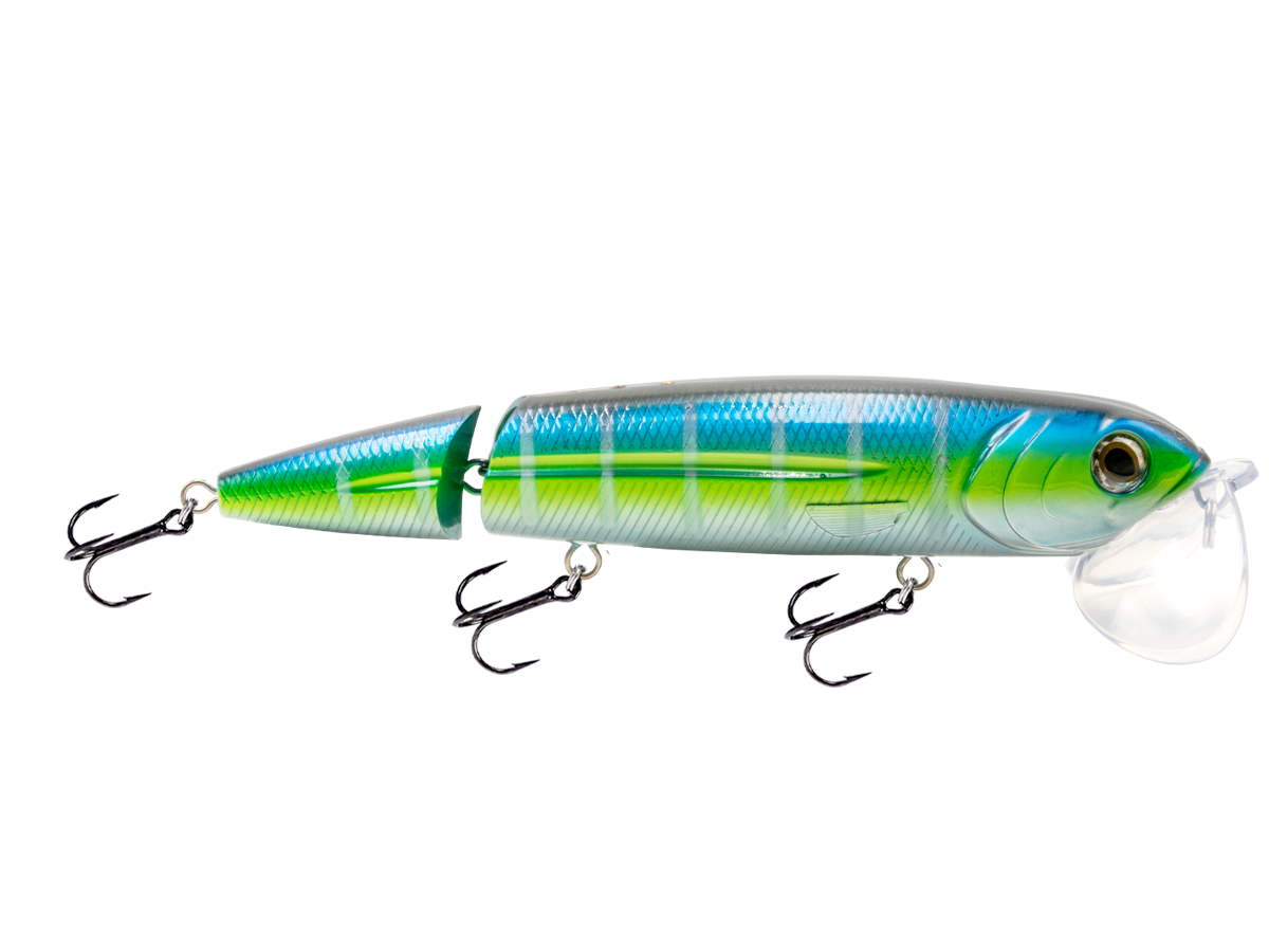 The 8-inch WALKING BOSS II MAGNUM is a revolutionary topwater lure that features an exaggerated, oversized, and cupped lip, which creates a uniquely powerful surface disturbance when it's retrieved. And it is simple for even the most inexperienced angler to fish: cast and retrieve (either slow or fast), and the unique design of the lip and body creates a topwater commotion that drives dorado, wahoo, snook, redfish, and tuna wild. Combine the Walking Boss II Magnum's action with the attraction of EBS Technology to draw saltwater predators from double the distance of traditional topwater lures. The Walking Boss II Magnum is built with a 2mm wire-through construction and comes equipped for big fish.