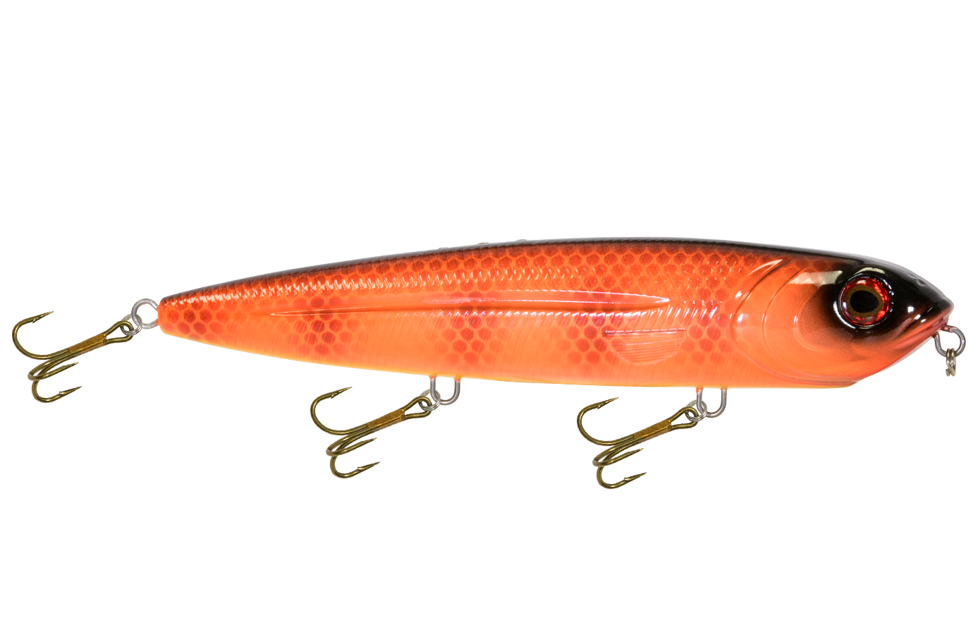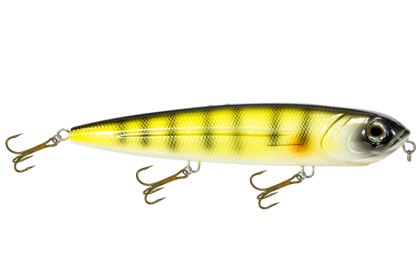 The 8-inch WALKING BOSS MAGNUM is the new pinnacle for walking baits. Enhanced with the power of EBS and designed to produce an irresistible side-to-side topwater commotion, the Walking Boss Magnum is a can't-miss for giant musky and pike, to name a few. The bait's elongated body design produces a flashy "walk the dog" action, while EBS reaches out to predators at double the distance of traditional lures! Add sturdy 2mm wire through construction and VMC 4X premium hooks and you have a topwater lure that's built to withstand the abuse of the multiple fish it attracts.