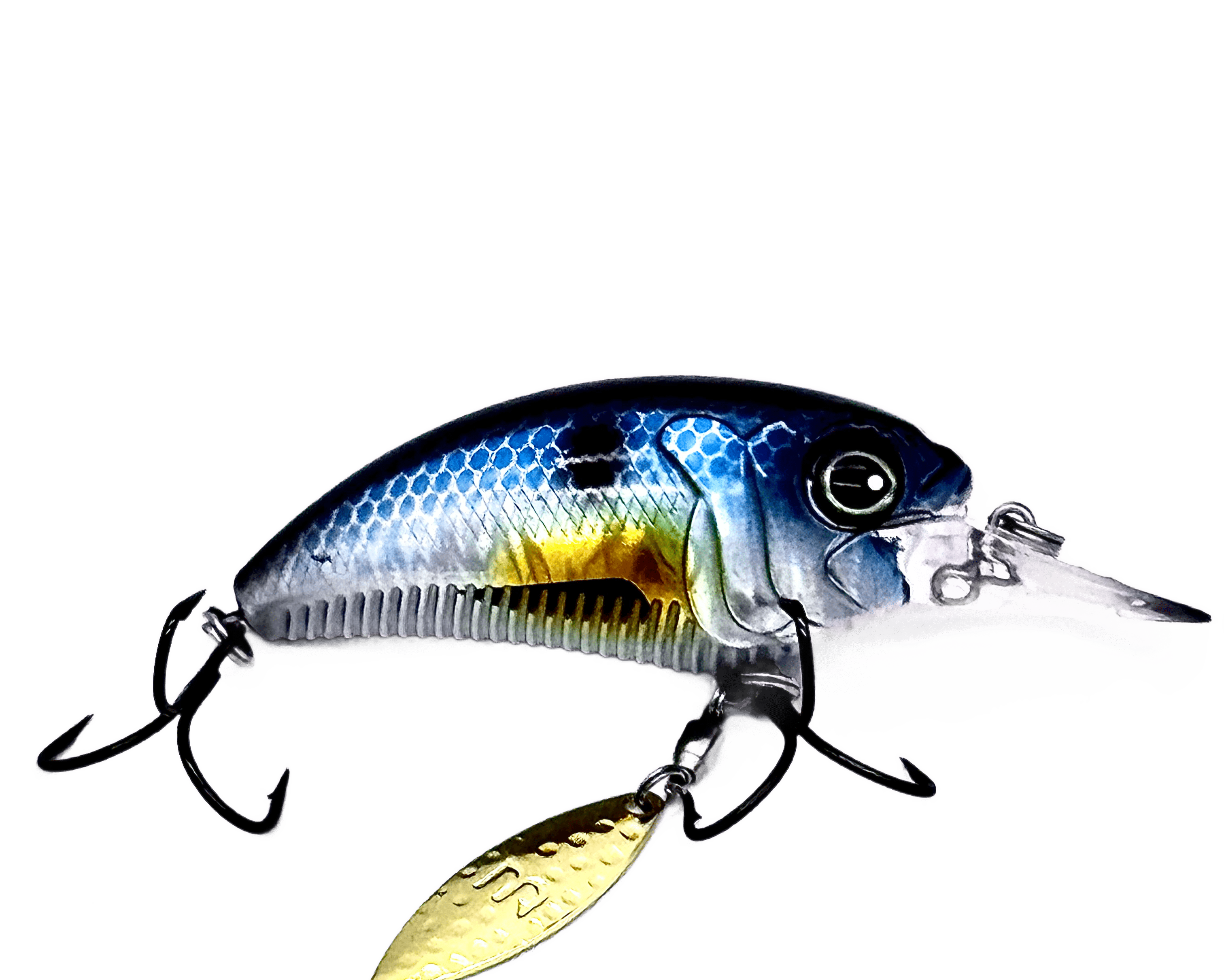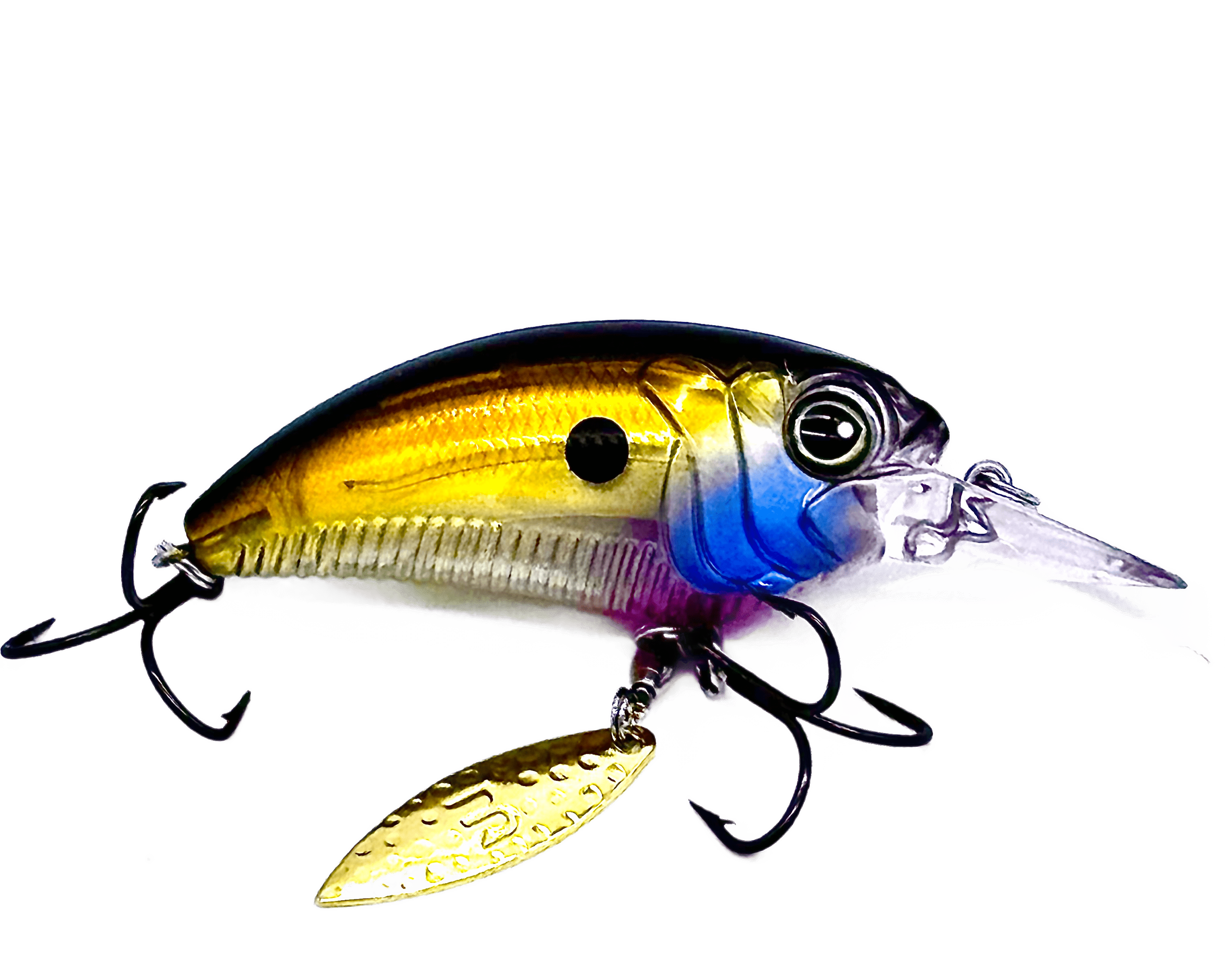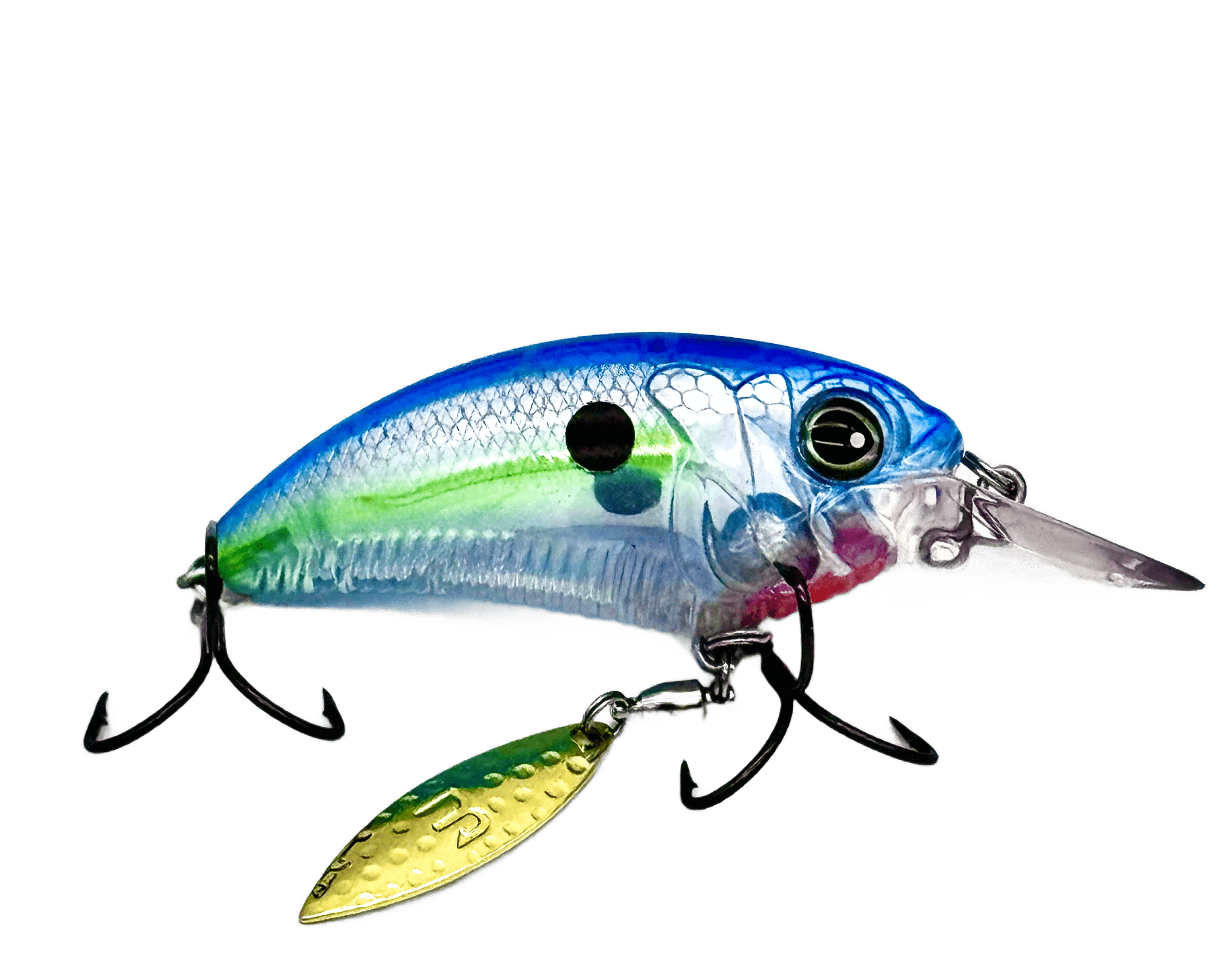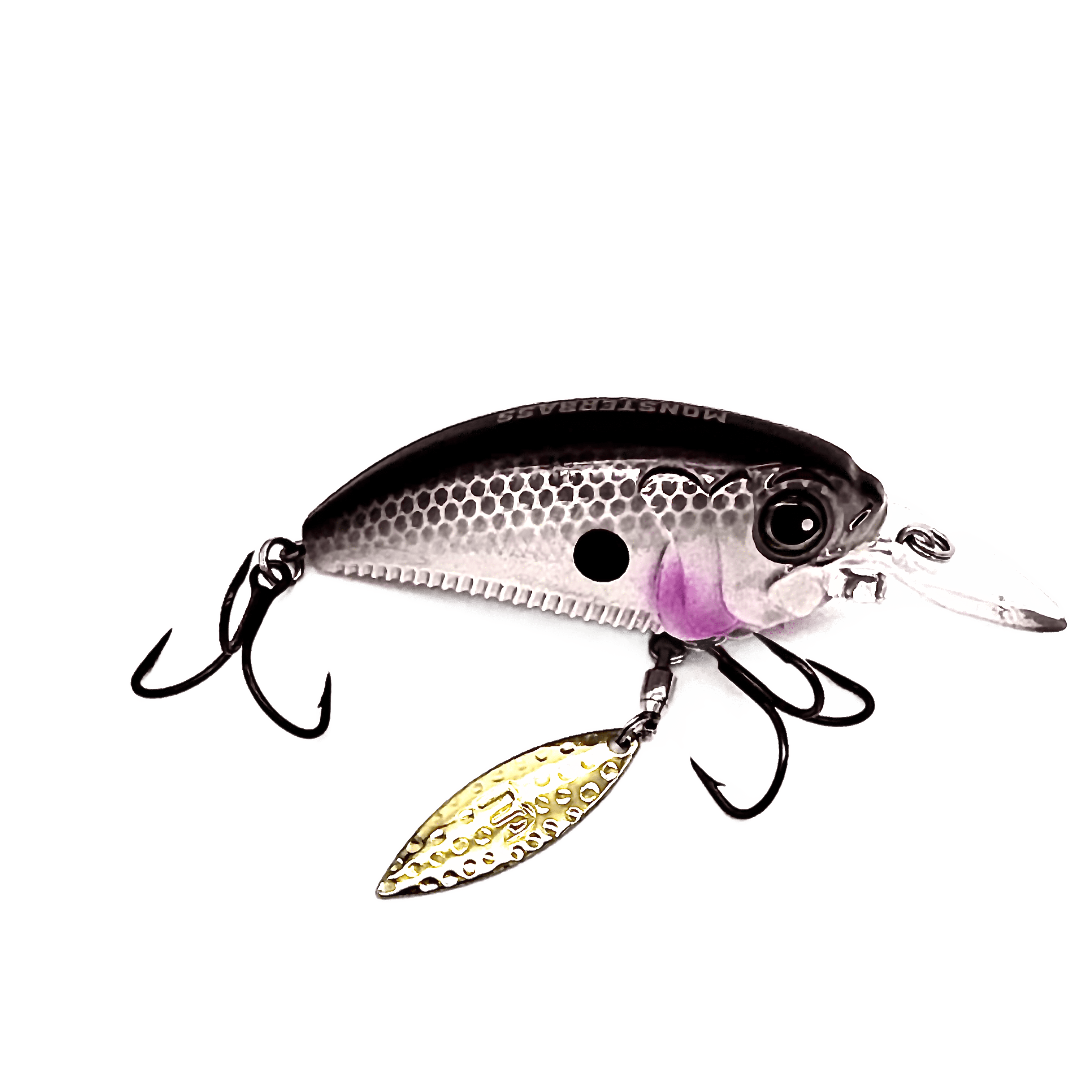Designed to stand out in a sea of crankbaits, the MONSTERBASS Money Maker delivers a deadly combination of flash, vibration, and erratic action that big bass can't ignore. Featuring a thick, flat-sided body and a premium willow blade rigged on a high-quality swivel beneath the front hook hanger, the Money Maker kicks into action the moment it hits the water, producing a brilliant shimmer and irresistible flash.