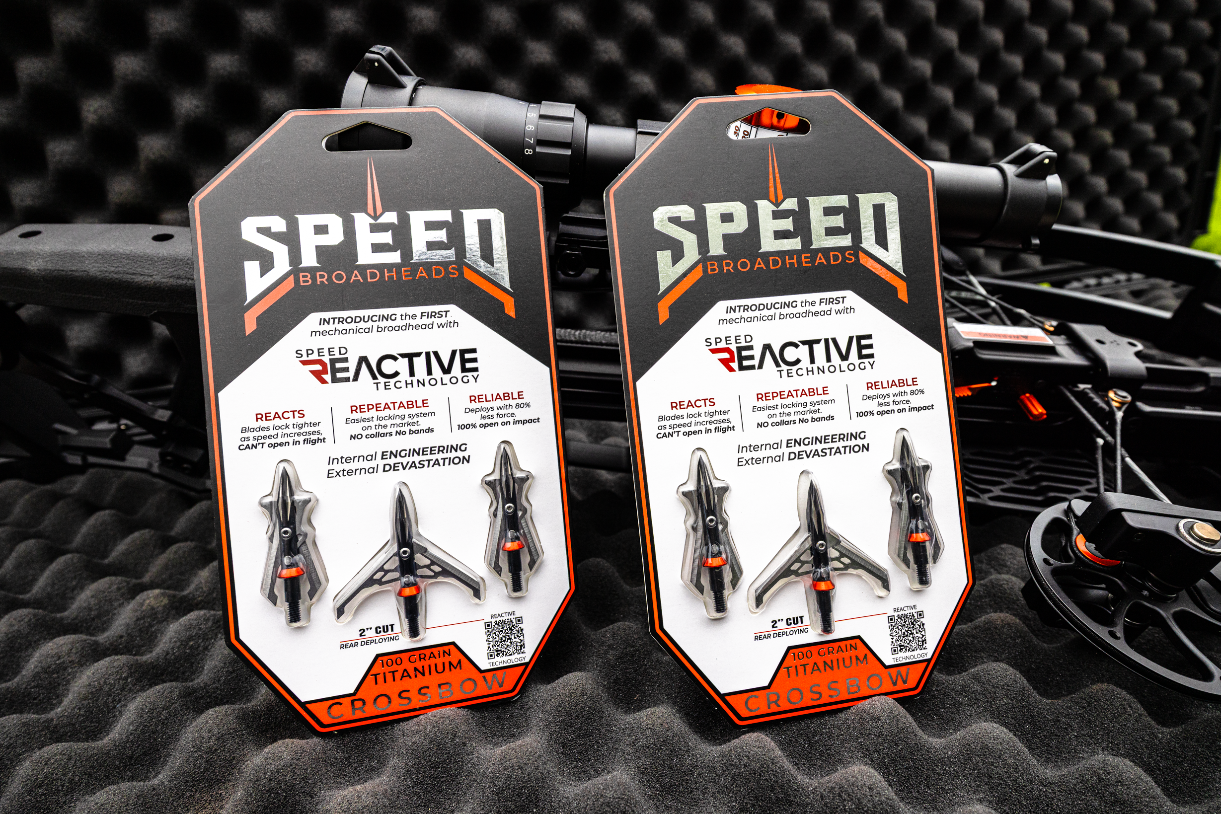 Optimized for high-speed crossbows, this titanium broadhead maintains perfect stability past 500 FPS. Razor-sharp .039 stainless steel blades deploy with just 1.5lbs of force using Speed Reactive Technology, delivering high-speed devastation, pinpoint accuracy, and a deadly 2” cut.