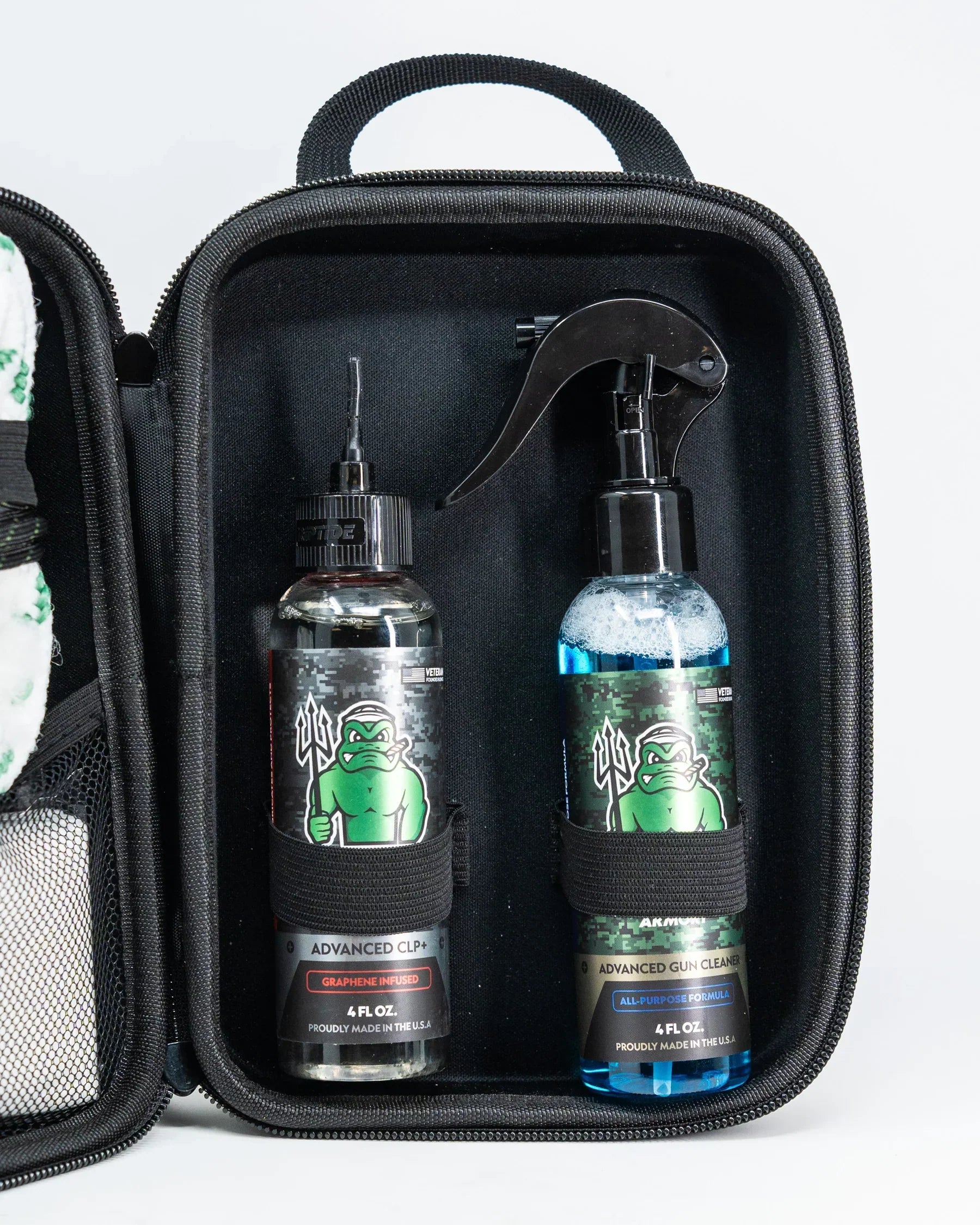 The Ultimate Gun Cleaning Kit - Leather Case was designed to provide the ultimate cleaning solution with everything you need and nothing more. This kit includes a 9mm, 12GA, .30 cal, and .22 Bore Snakes which also fits for .223/5.56, a double-ended nylon brush for thorough scrubbing and cleaning. 100 of two different sized cleaning patches (6cm x 7cm and 3.5cm x 7.5cm) to ensure precise coverage, while 10 cotton swabs make it easy to tackle hard-to-reach areas. Pair with two of our specially designed chemicals for the ultimate cleaning experience at an affordable price. Whether you're maintaining a high-end firearm or just keeping your gear in top shape, this kit has you covered.