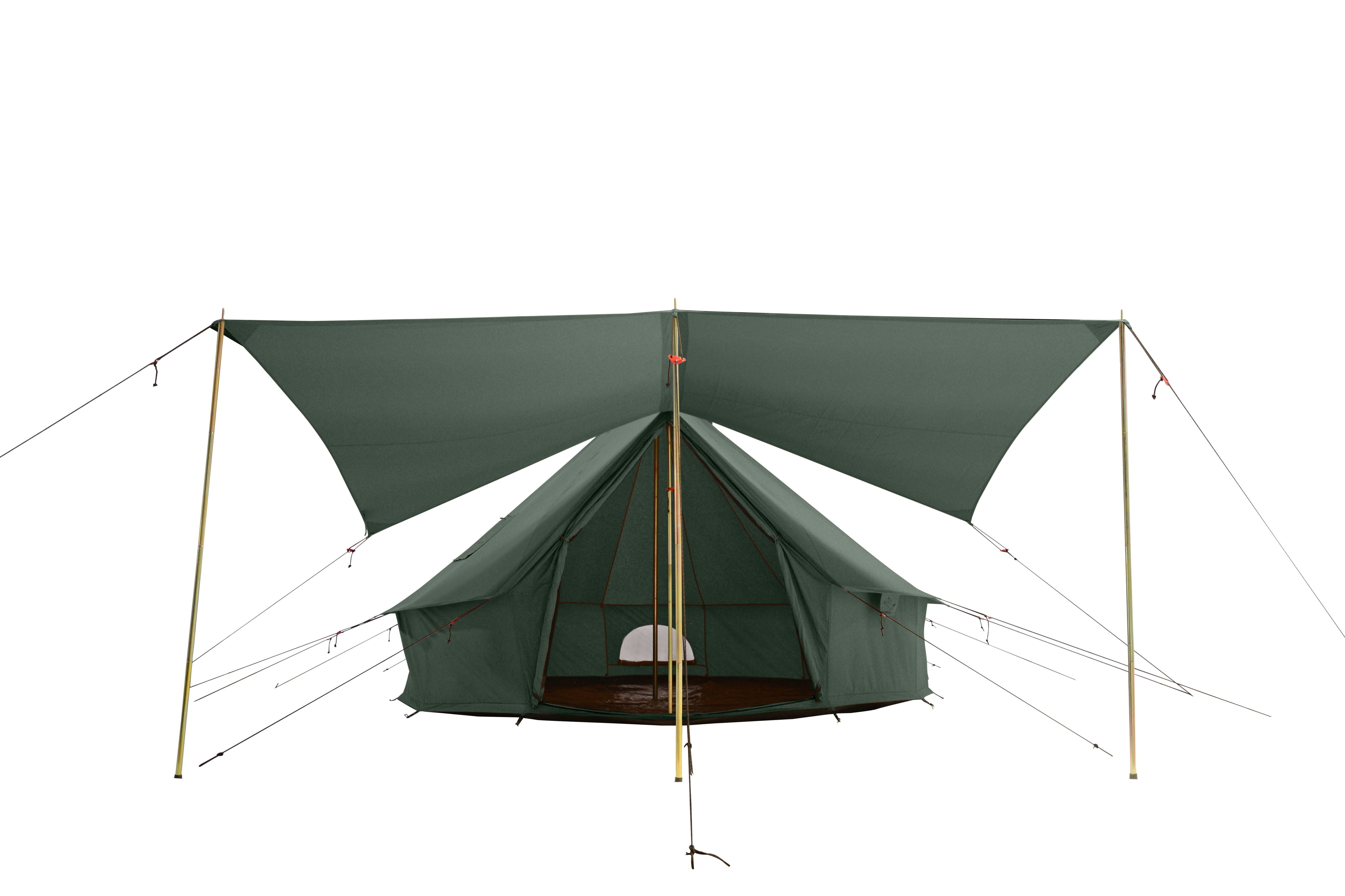 The awning is a natural extension of your living space outside your bell tent. When it starts to get warmer, you can set up the awning to enjoy the breeze while staying covered from the sun.