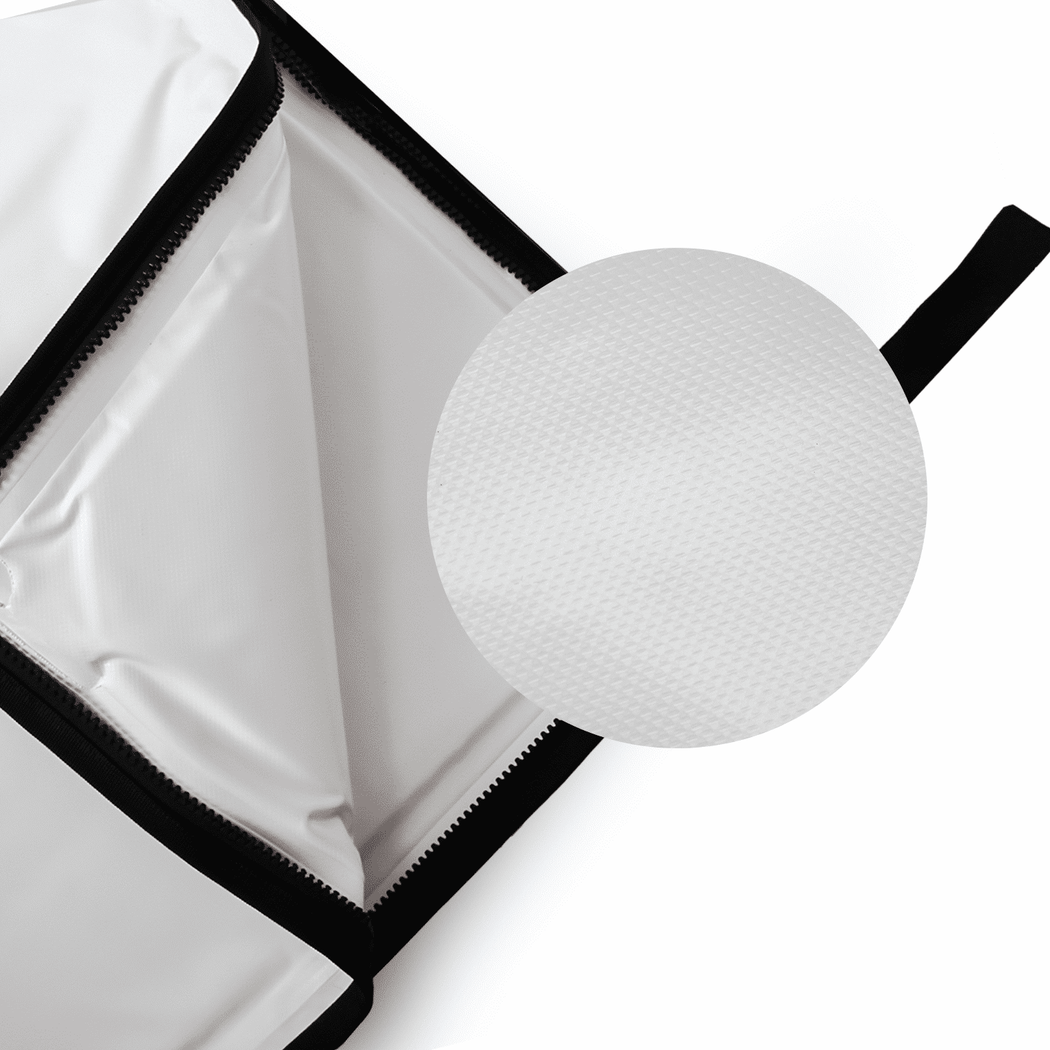 Inner lining with heat-welded seams for 100% leak-proof performance and easy cleaning.